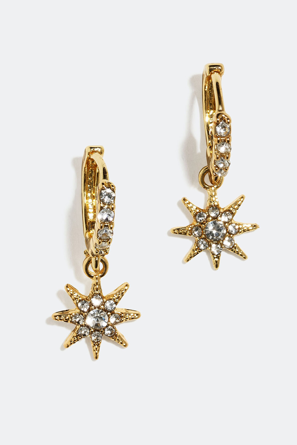 Korvarenkaat, joissa tähden muotoiset riipukset ja lasikiviä ryhmässä Korut / Korvakorut / Korvarenkaat @ Glitter (327957661000)