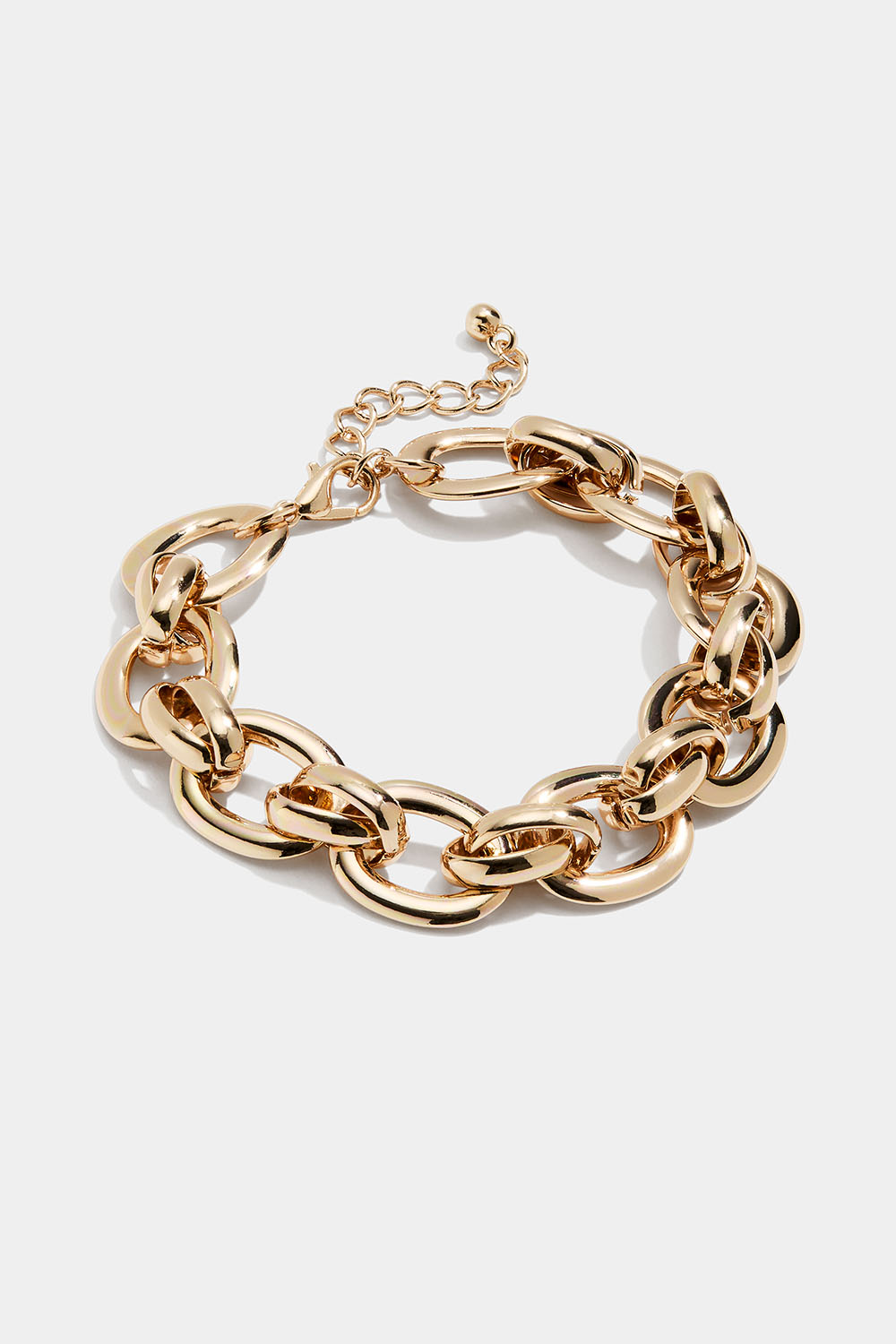 Kullanvärinen ketjurannekoru, jossa on soikeat, litteät lenkit ryhmässä Korut / Rannekorut / Leveät @ Glitter (251001482002)