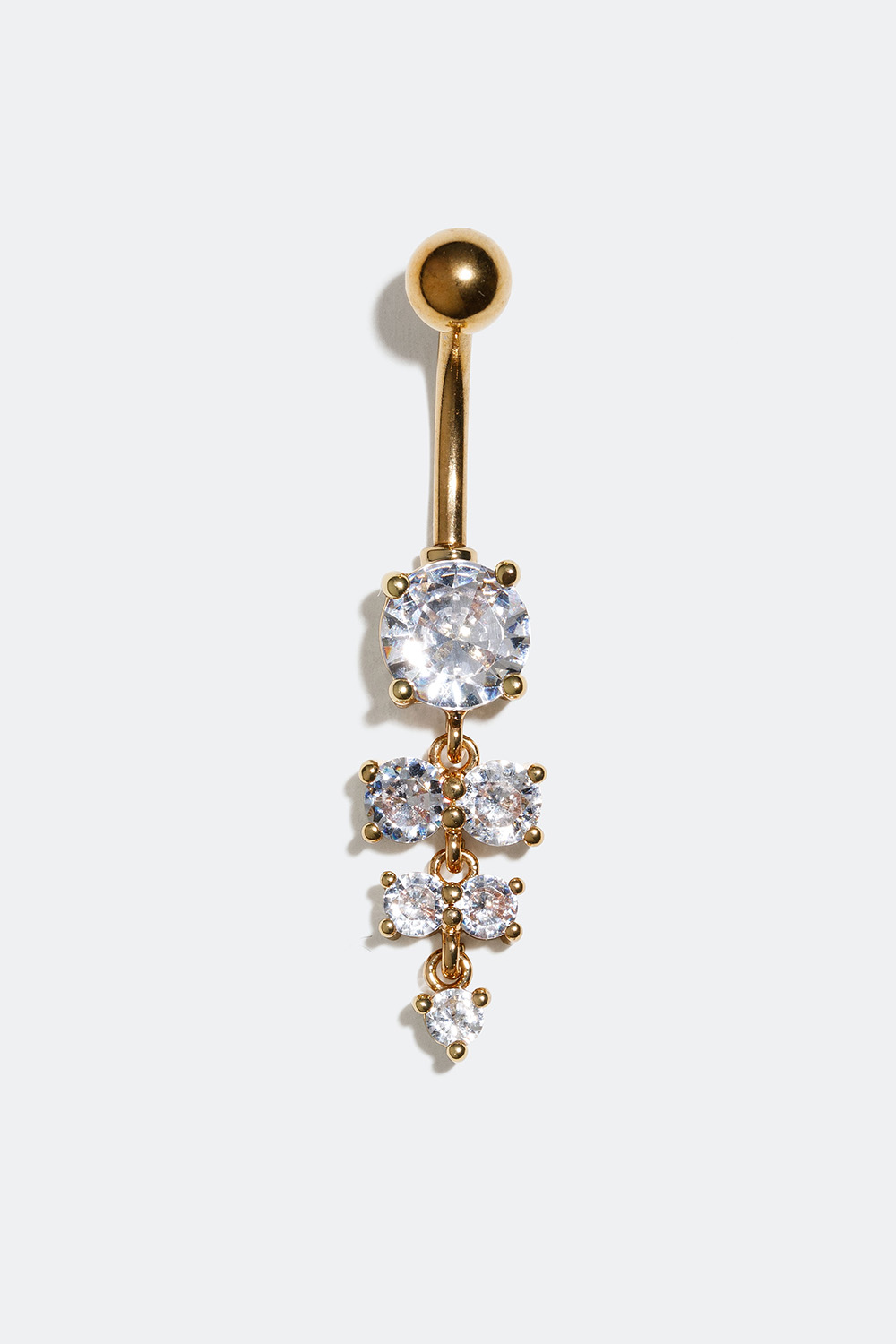 Kullanvärinen napakoru, jossa pyöreillä Cubic Zirkonia -kivillä koristeltu riipus ryhmässä Korut / Lävistyskorut / Napakorut @ Glitter (255000440110)