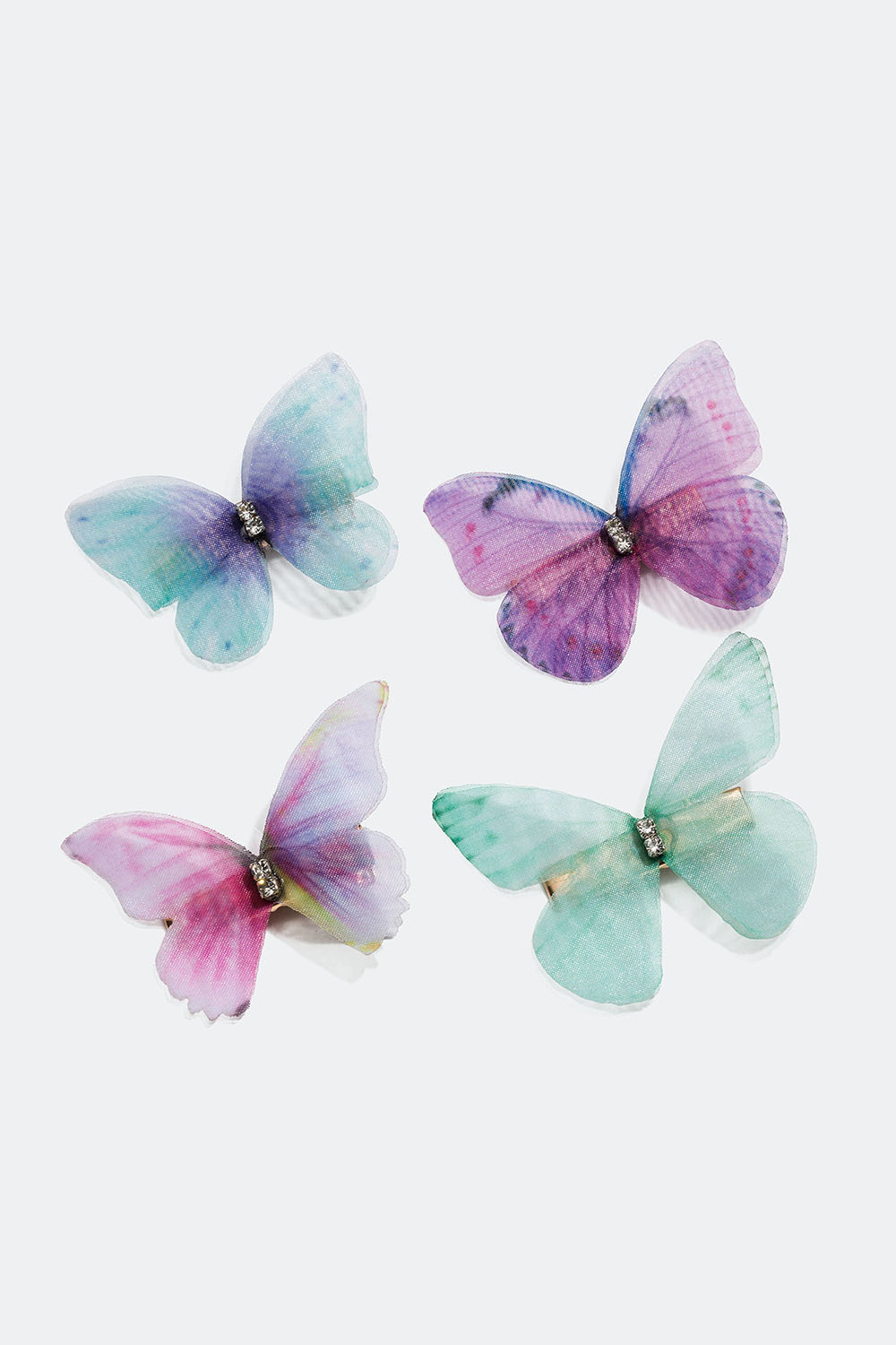 Kullanväriset hiussoljet, joissa eri värisiä perhosia, 4 kpl