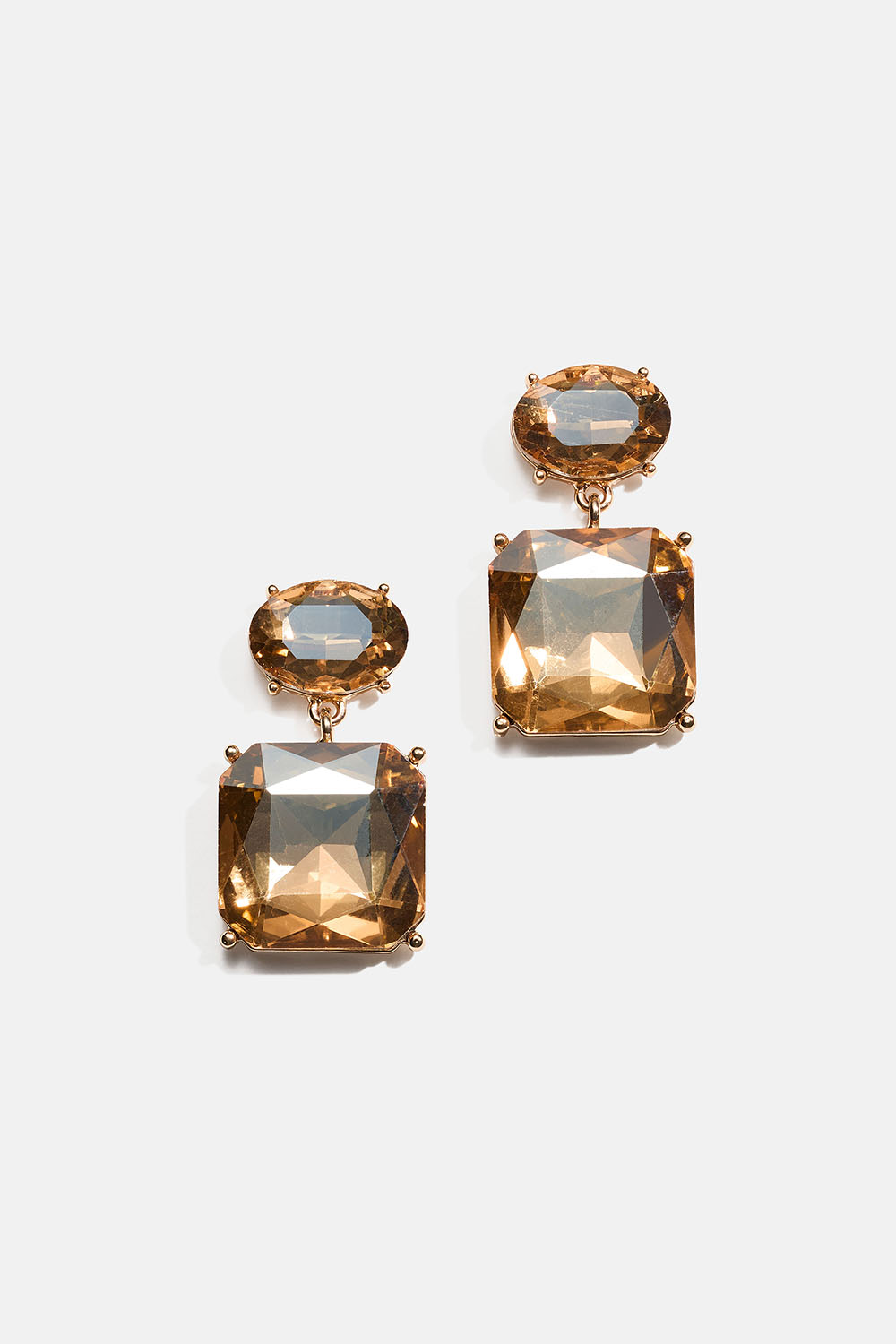 Kullanväriset korvakorut, joissa soikeita ja neliönmuotoisia lasikiviä ryhmässä Korut / Korvakorut @ Glitter (253010888300)