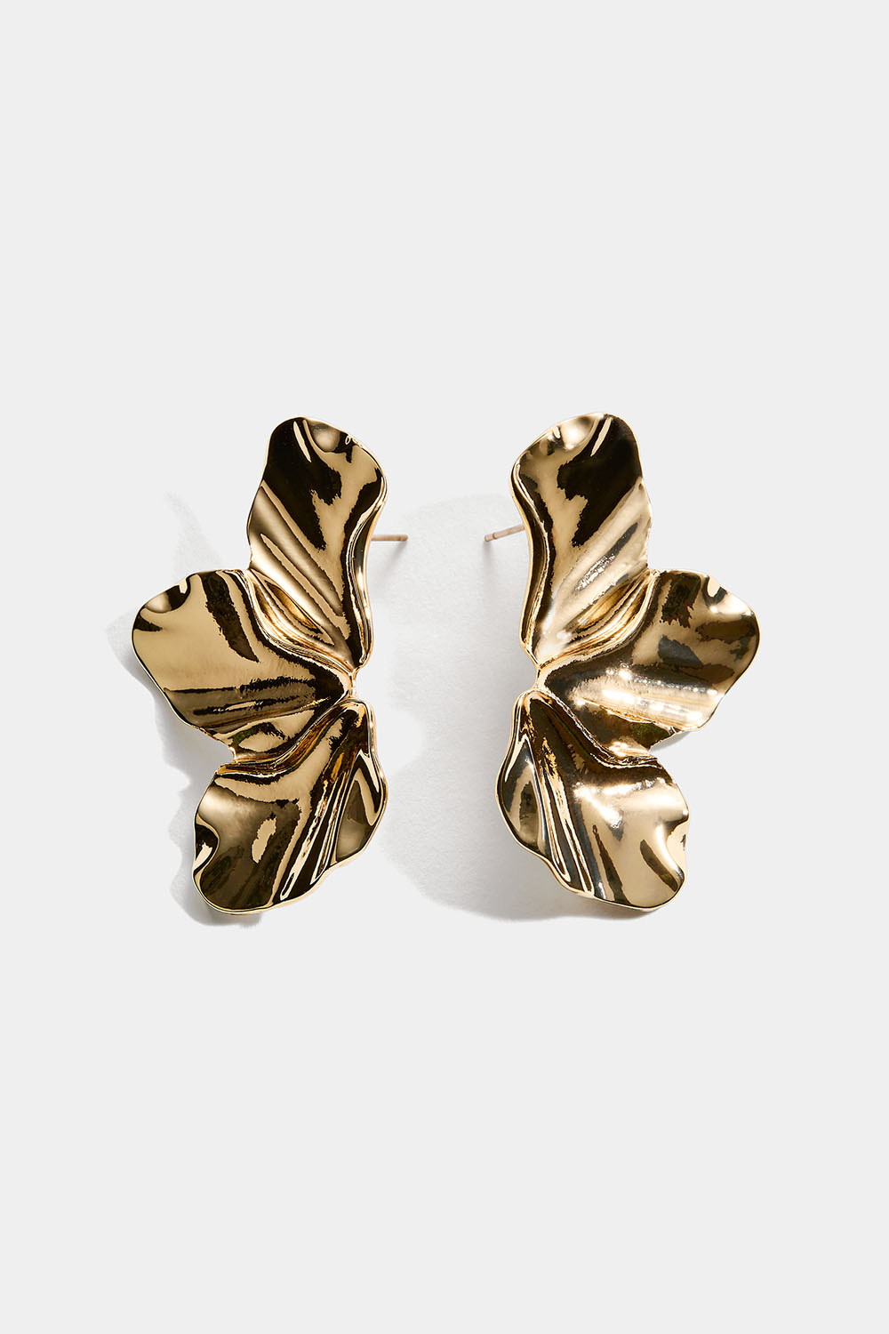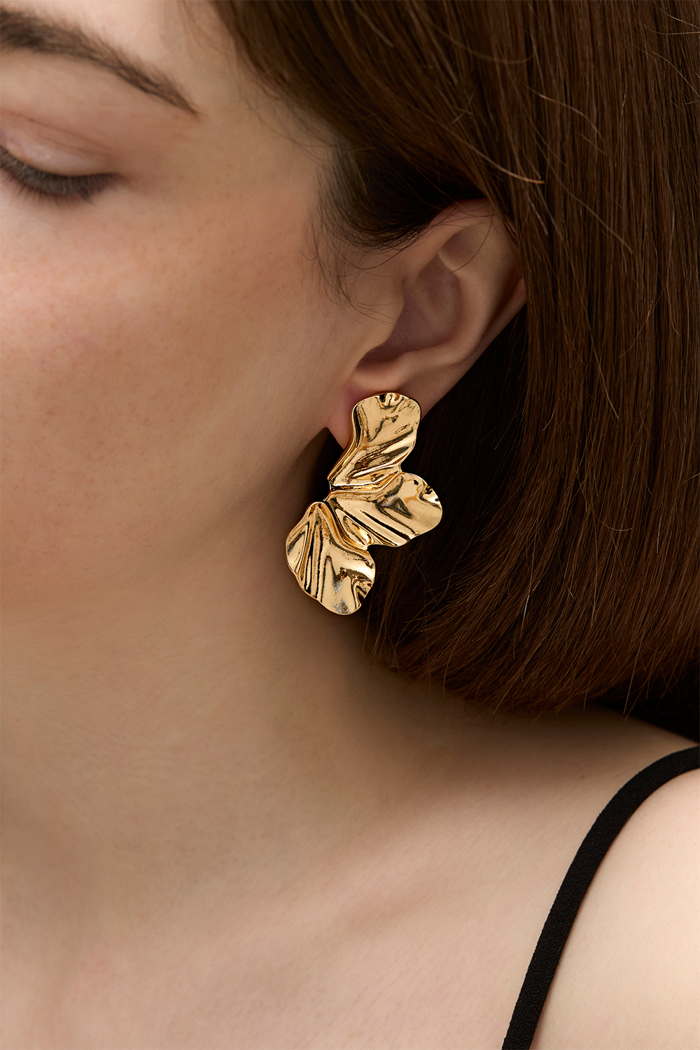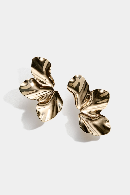Terälehtien muotoiset kullanväriset metallikorvakorut.