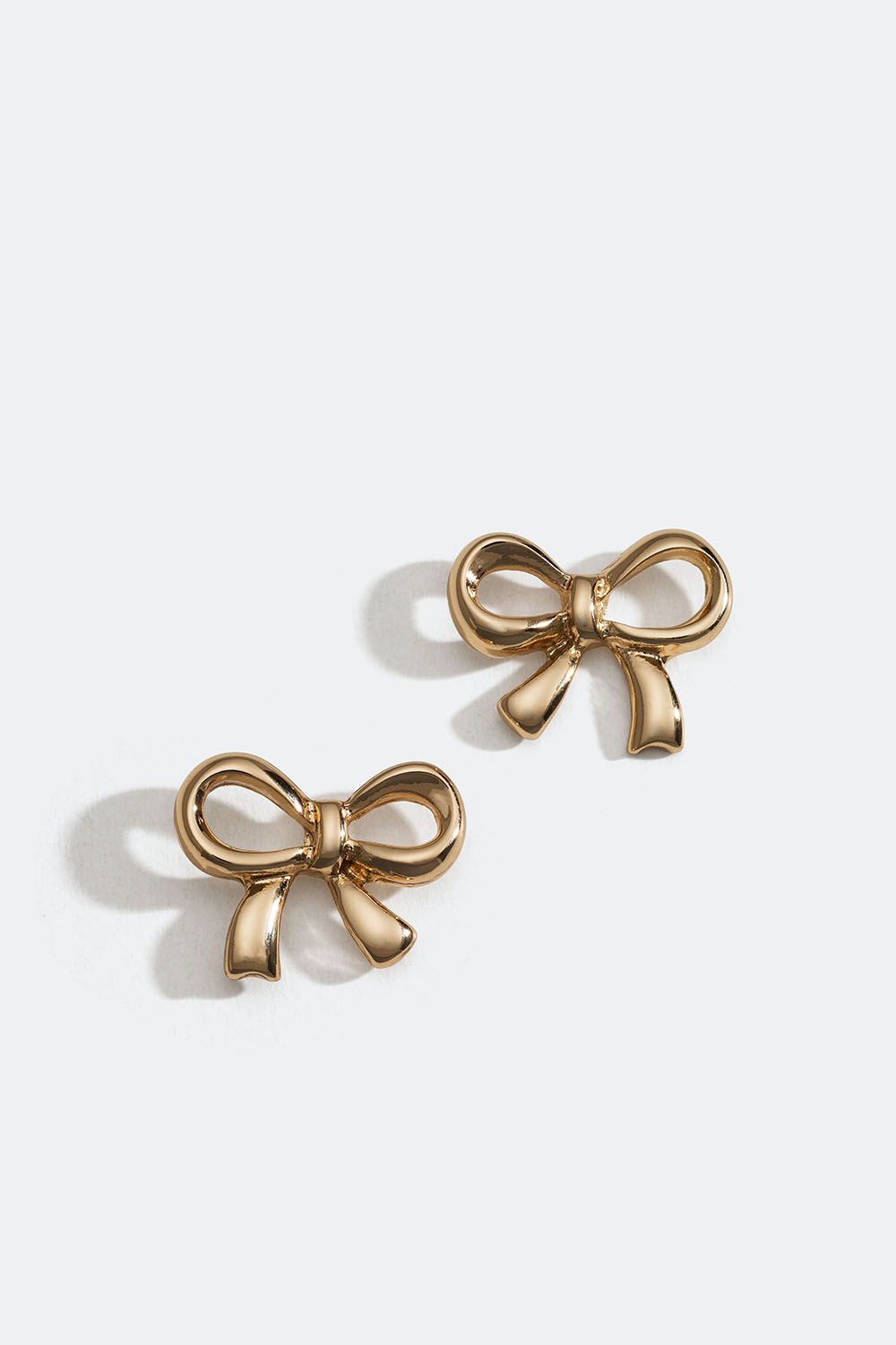 Pienet koristeelliset, rusetinmuotoiset korvakorut kullanvärisestä metallista.