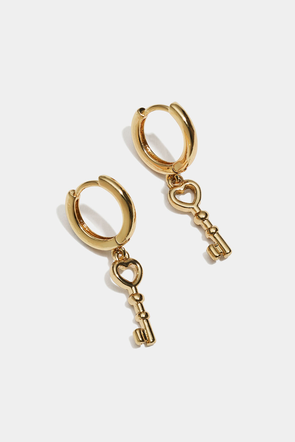 Kullanväriset korvarenkaat, joissa avainriipus ryhmässä Korut / Korvakorut / Korvarenkaat / Korvarenkaat riipuksilla @ Glitter (253009812002)