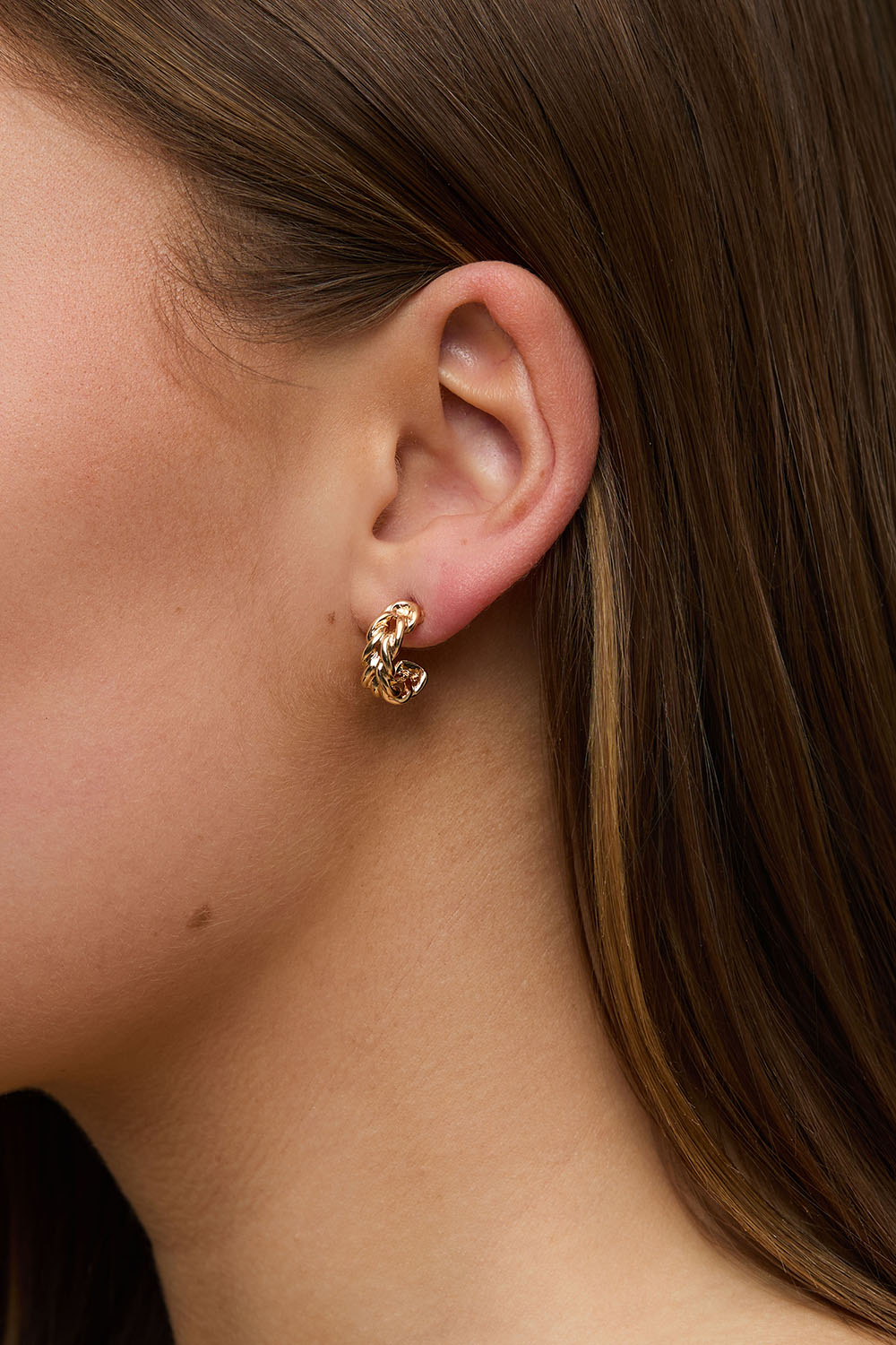 Kullanväriset korvarenkaat, joissa ketjumainen muotoilu