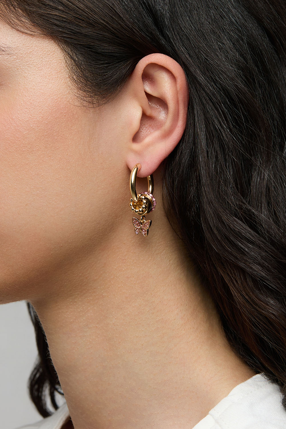 Kullanväriset korvarenkaat, joissa perhonen ja vaaleanpunaisia lasikiviä ryhmässä Korut / Korvakorut / Korvarenkaat / Korvarenkaat riipuksilla @ Glitter (253011102002)