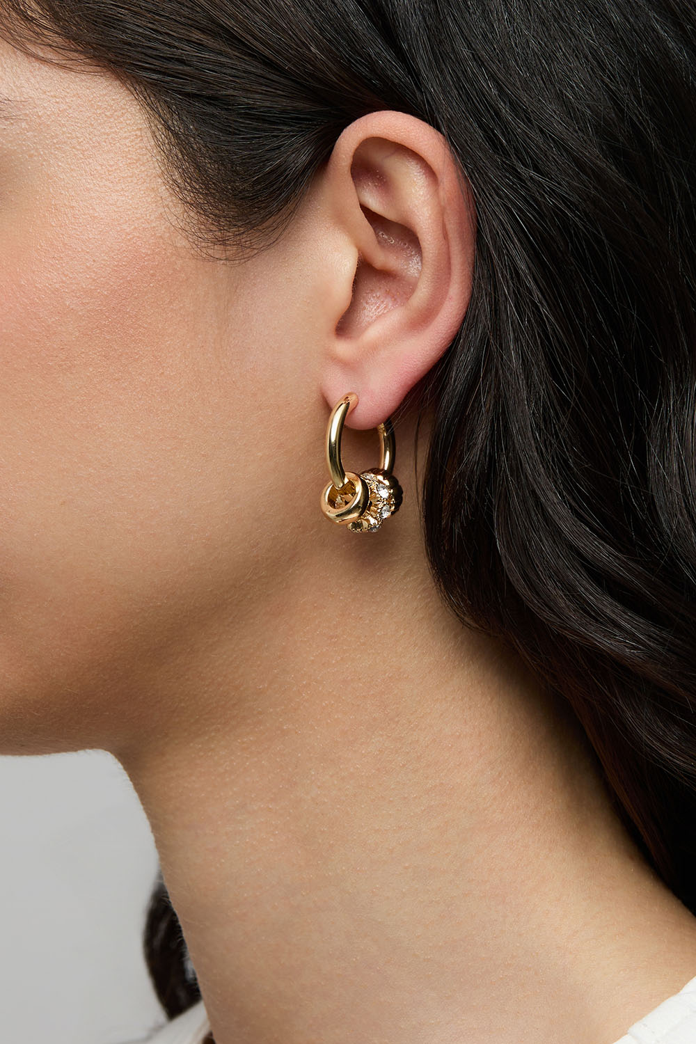 Kullanväriset korvarenkaat, joissa pyöreitä riipuksia ja lasikiviä ryhmässä Korut / Korvakorut / Korvarenkaat / Korvarenkaat riipuksilla @ Glitter (253011112002)