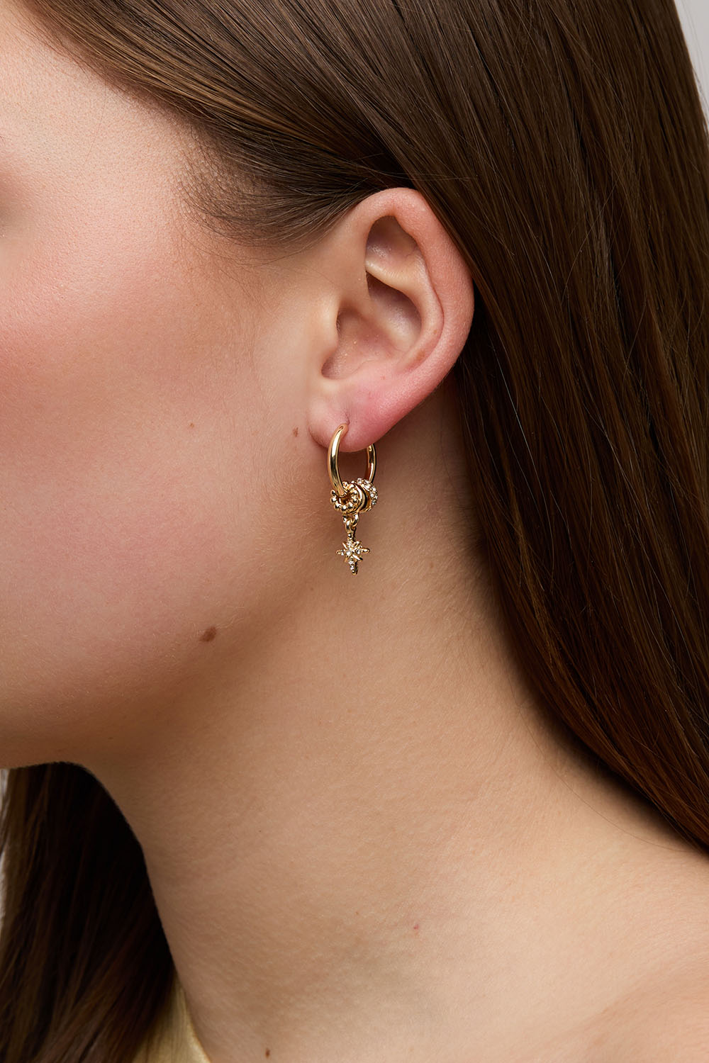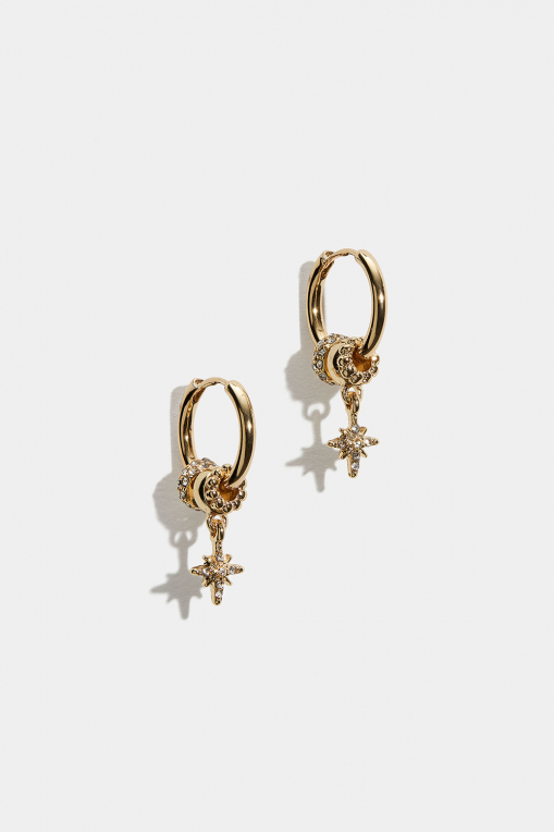 Kullanväriset korvarenkaat, joissa pyöreitä riipuksia ja tähtiä ryhmässä Korut / Korvakorut / Korvarenkaat / Korvarenkaat riipuksilla @ Glitter (253010912002)