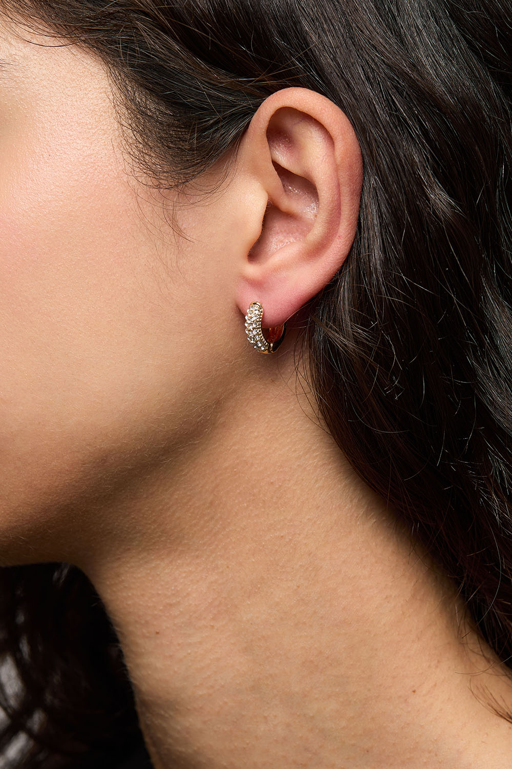 Kullanväriset minikorvarenkaat, joissa strassikiviä