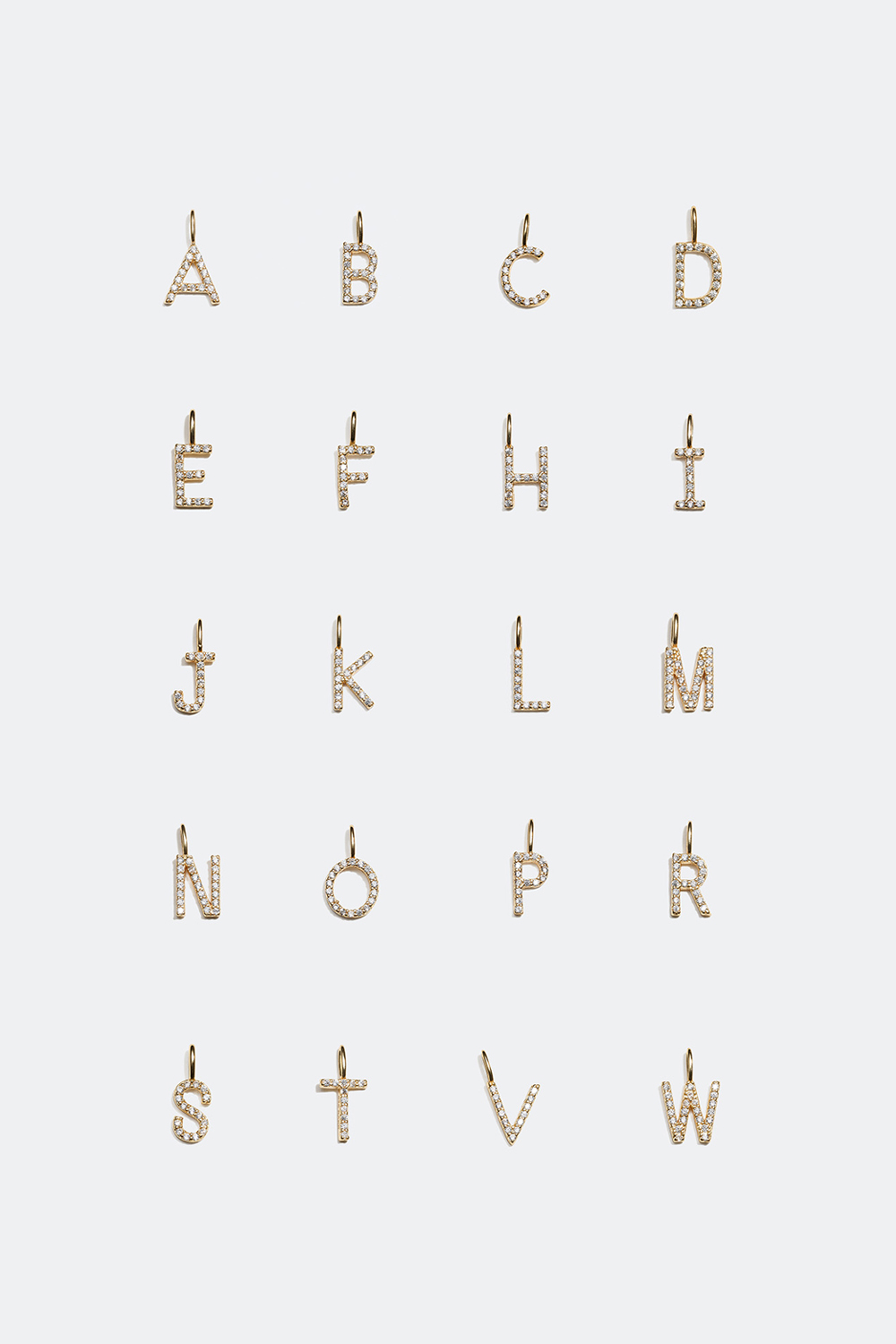 Pieni kirjaimen muotoinen tyylikäs riipus. Riipus on 18 karaatin kullattua hopeaa, ja se on koristeltu pienillä hohtavilla Cubic Zirconia -kivillä. Valitse kirjaimet kokovalikosta ja yhdistä niihin aito hopeaketju. Voit yhdistellä kirjainkorujamme ja tehdä korustasi persoonallisemman luomalla nimen, sanan tai alkukirjaimet.