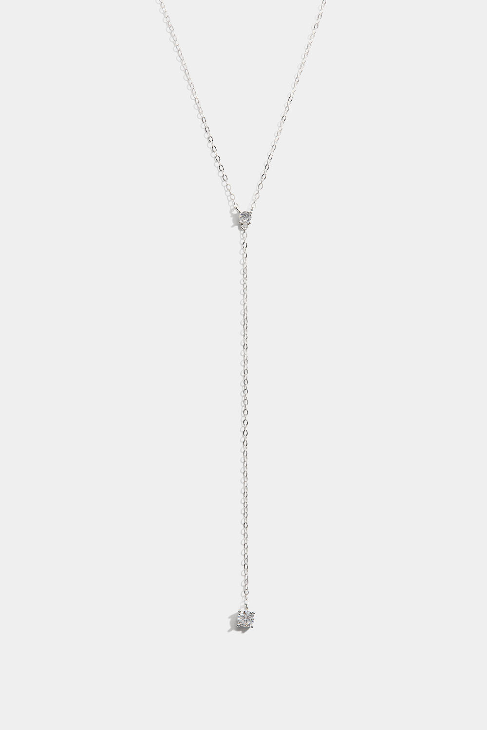 Lariat-kaulakoru aitoa hopeaa koristeltuna kahdella Cubic Zirconia-kivellä.