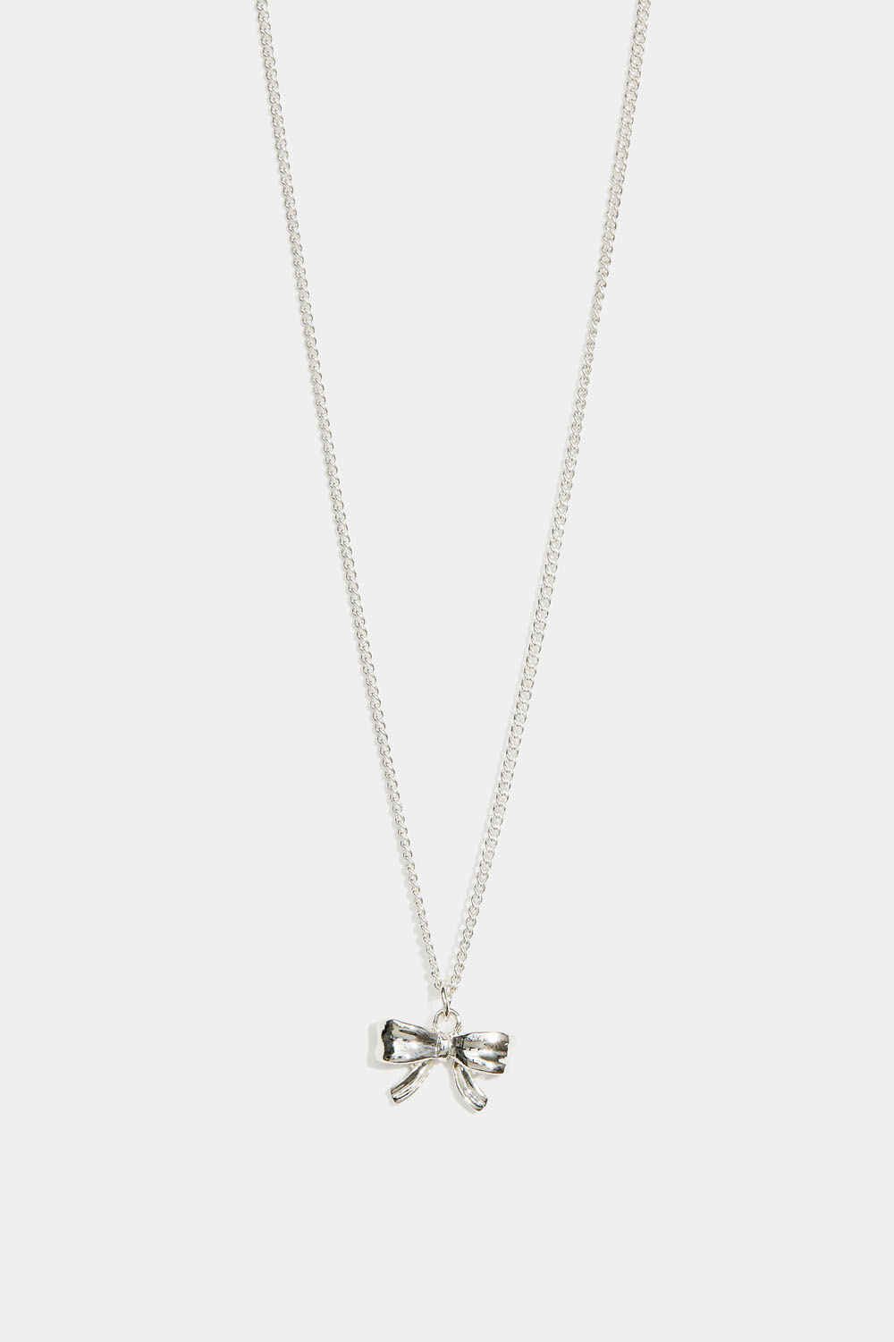Lasten hopeanvärinen kaulakoru, jossa on rusetti.