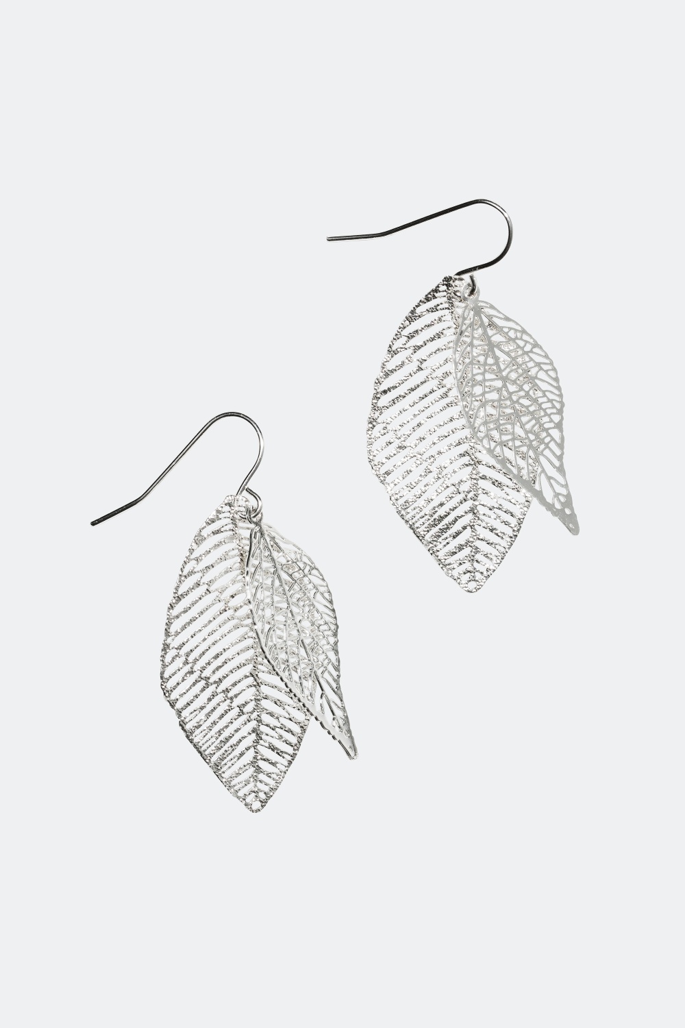 Korvakorut, joiden kahdessa lehdessä on koristeellisia leikkauksia: suuremmassa lehdessä on harjattu pinta ja pienemmässä kiiltävä pinta. Saatavana kullan- ja hopeanvärisenä.
