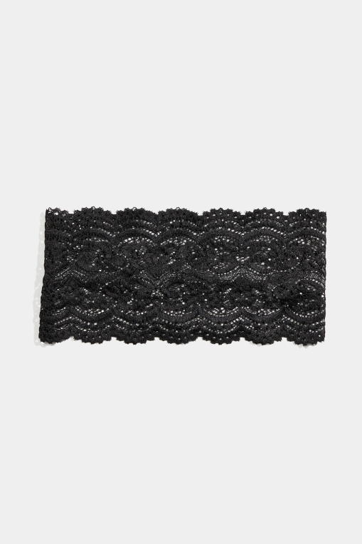 Leveä hiuspanta mustaa pehmeää pitsiä.