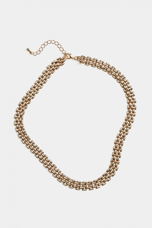 Leveä kullanvärinen rannekoru, jossa tiivis ketju