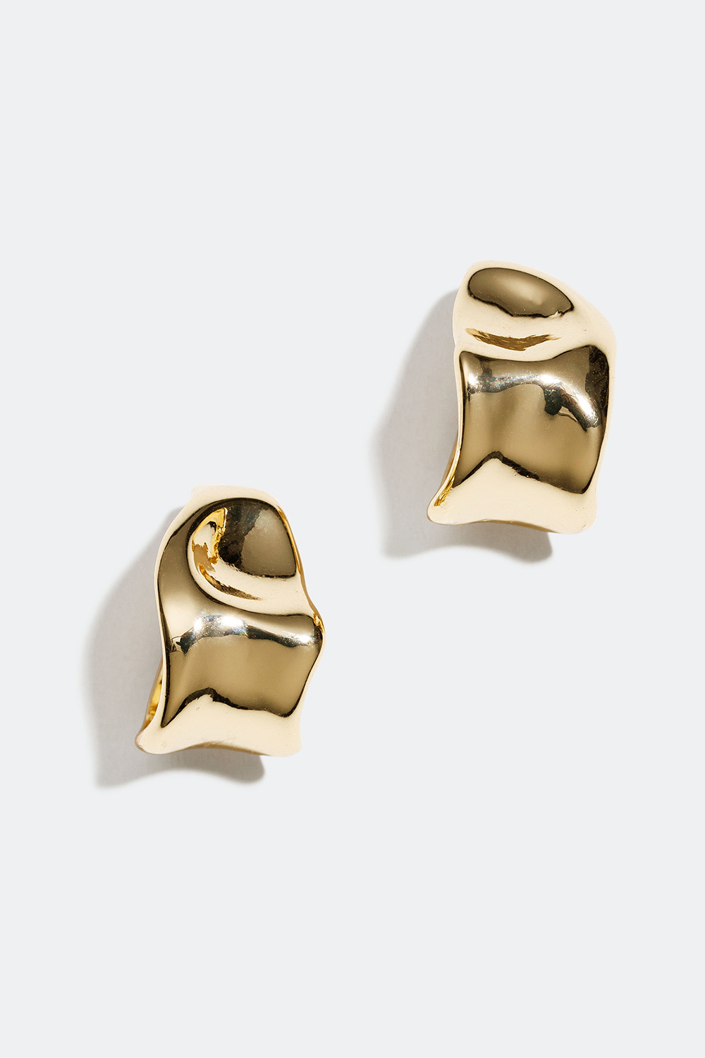 Leveät soikeat kullanväriset metalliset korvarenkaat, joissa orgaaninen muotoilu. Kiehtovasti muotoillut veistokselliset korvakorut, joista tulee nopeasti korukokoelmasi suosikki.