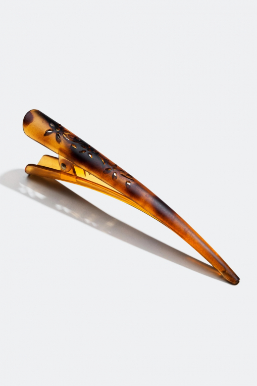 Mattapintainen hiusklipsi - Linnunnokka-mallinen pitkä hiusklipsi, jonka sisäpuolella olevat piikit pitävät klipsin paikallaan. Klipsi on jousiosaa lukuunottamatta kauttaaltaan muovia.