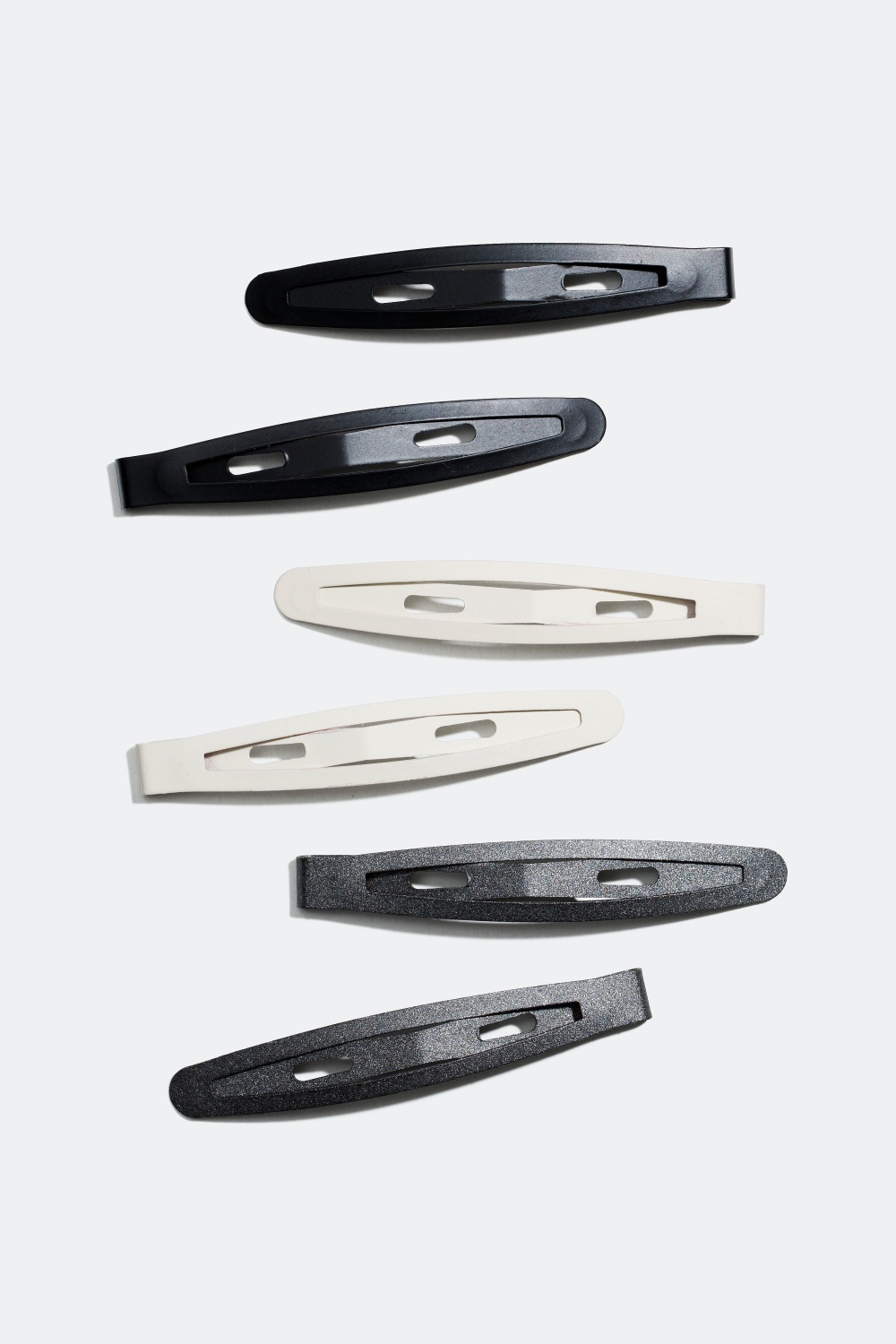Mattapintaiset hiussoljet, 6/pakk. Pakkauksessa on hiussolkia väreissä musta.
