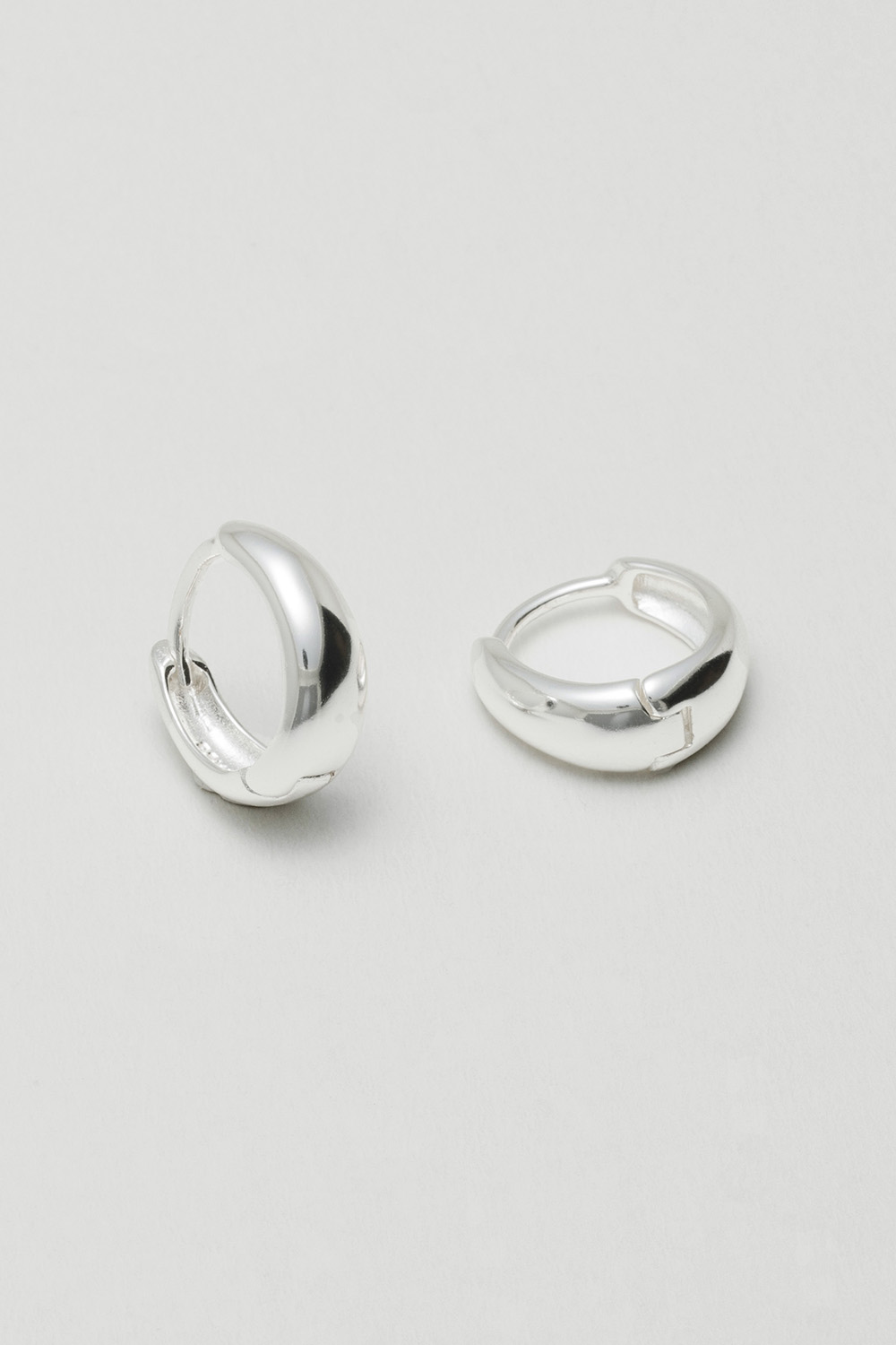 Pienet yksinkertaiset aidot hopeakorvarenkaat, joissa on hieman leveämpi pohja, mikä antaa niille paksun muodon. Tyylikkäät korvakorut on helppo avata ja sulkea saranalla ja tapilla, jotka napsautetaan yhteen. Täydelliset arkikorvakorut, mutta sopivat hyvin yhteen myös muiden korvakorujen ja korujen kanssa.