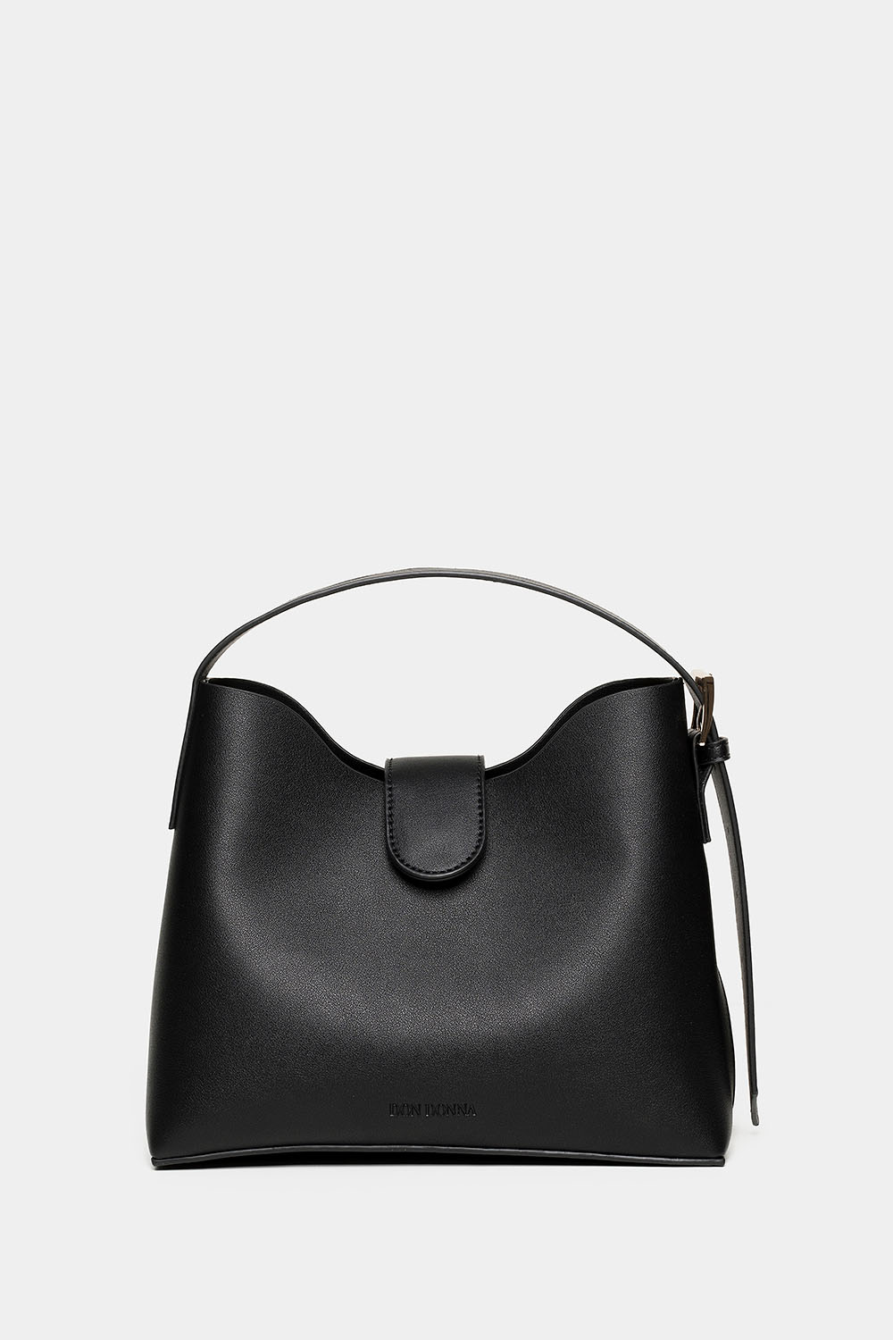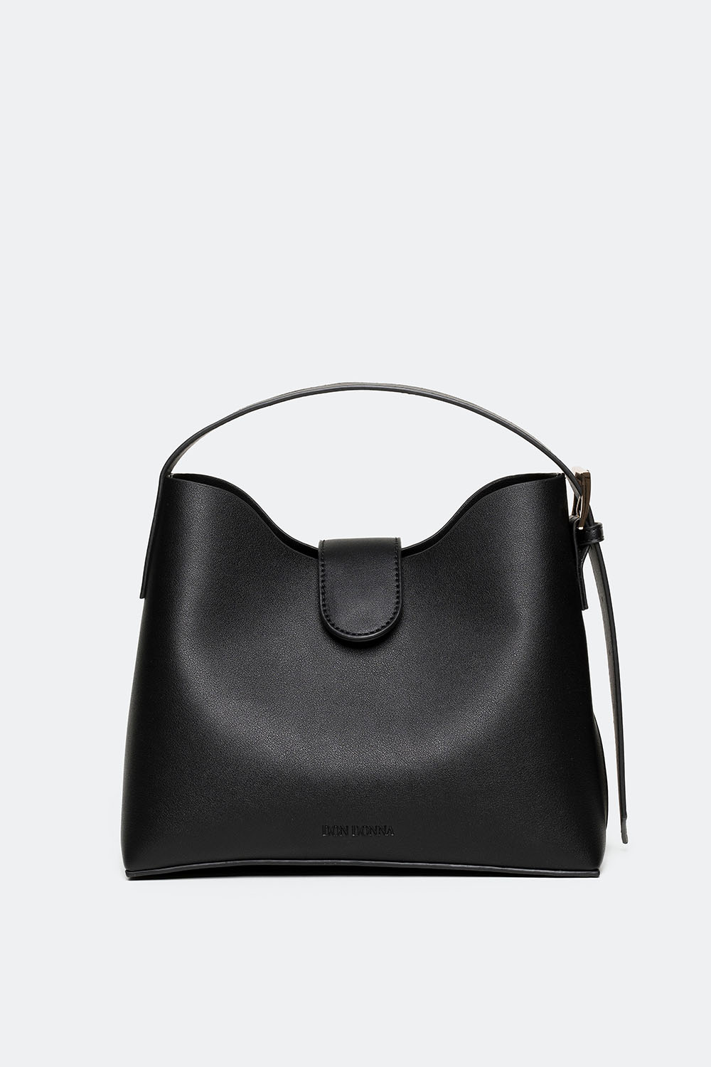 Musta käsilaukku, jonka etupuolella on painettu Don Donna -logo. Tyylikkäässä laukussa on leveä irrotettava ja säädettävä olkahihna. Laukun mukana tulee pienempi sisäpussi. Täydellinen arkilaukku ja asuste sekä työhön että päivään kaupungilla. Olkahihna on irrotettava ja säädettävä, joten laukkua voi kantaa myös crossbody-tyyliin.