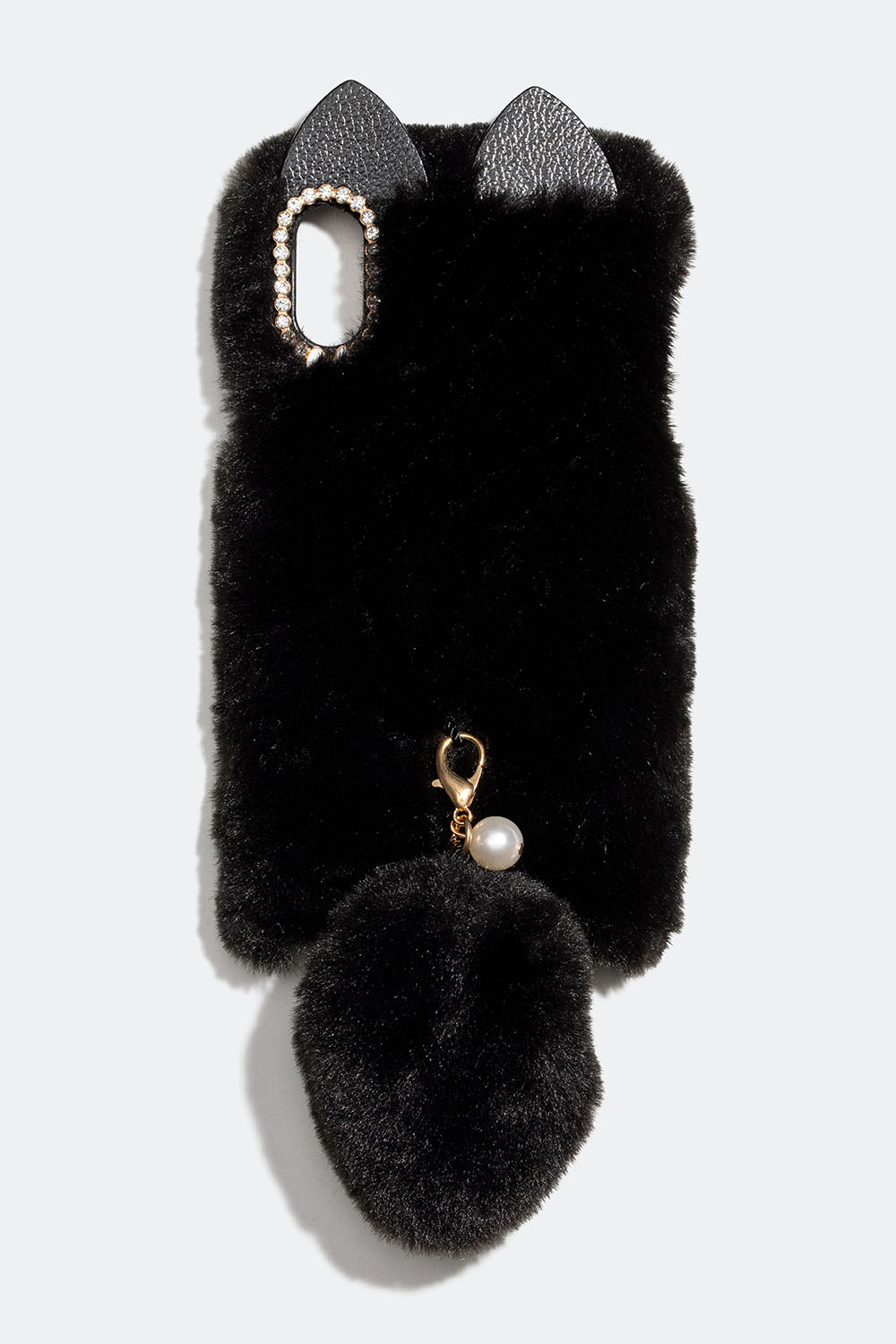 Musta pörröinen matkapuhelinkotelo, jossa korvat ja häntä, iPhone X ryhmässä Asusteet / Matkapuhelintarvikkeet / Matkapuhelinkotelot / iPhone X @ Glitter (174000389010)