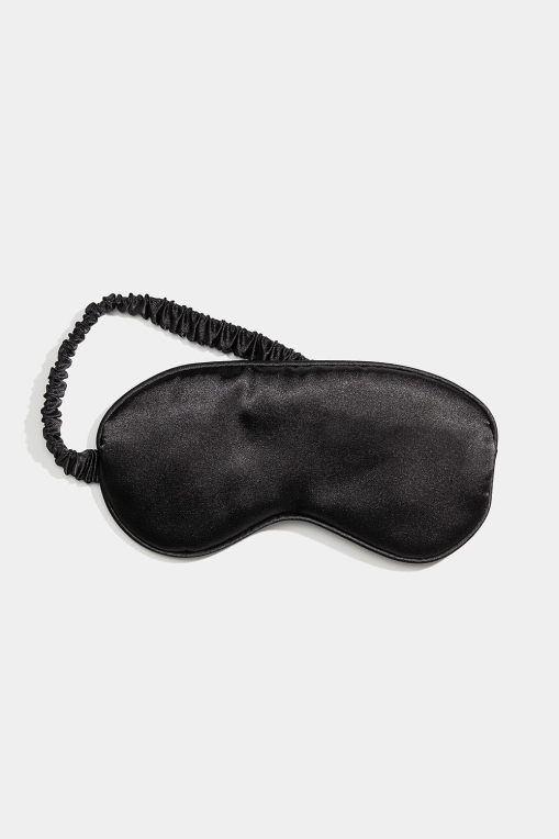 Kevyesti pehmustettu, mustasta satiinista valmistettu unimaski, jossa on joustava nauha pitämään maski paikoillaan.