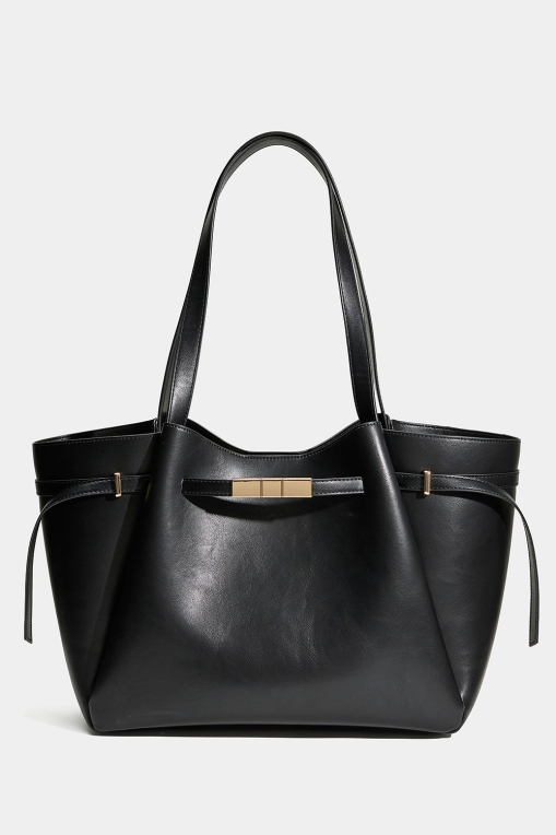 Musta shopper-laukku kultaisilla yksityiskohdilla