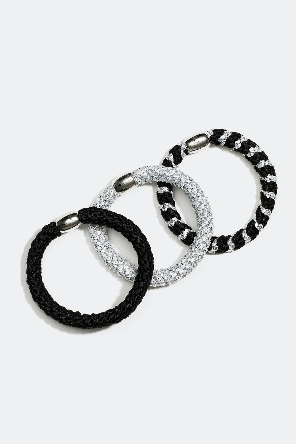 Mustan ja hopean väriset punotut hiuslenkit, 3 kpl sekoitus ryhmässä Hiustuotteet / Hiuslenkit / Monipakkaus @ Glitter (332000429400)