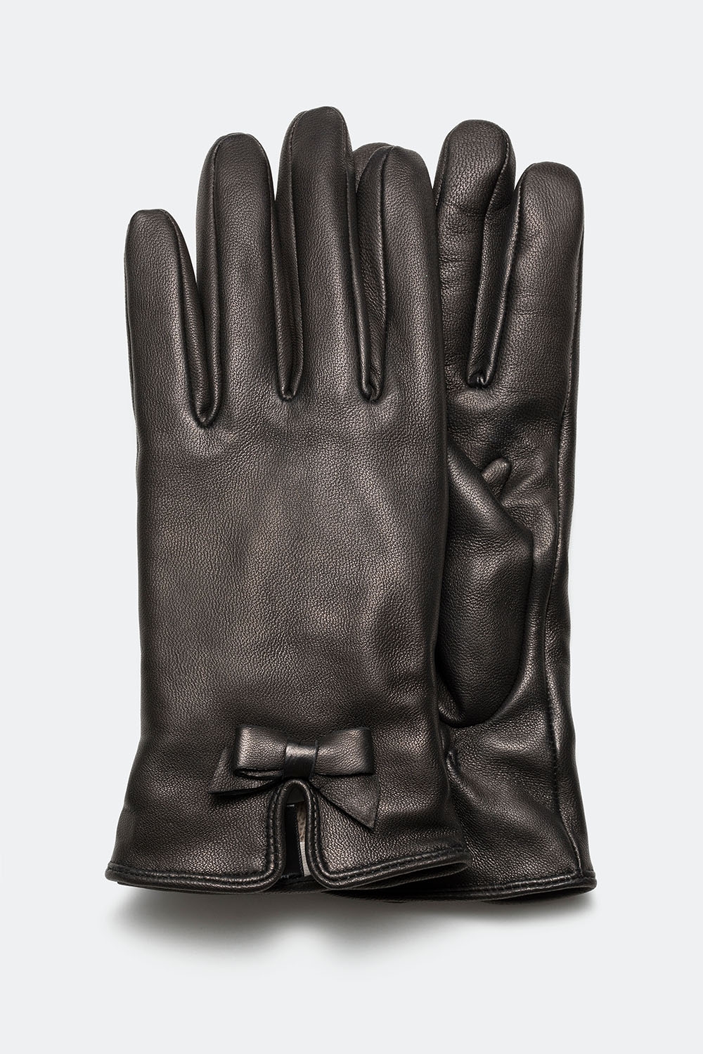 Mustat nahkahansikkaat ruseteilla ryhmässä Asusteet / Nahkahansikkaat @ Glitter (17100081)