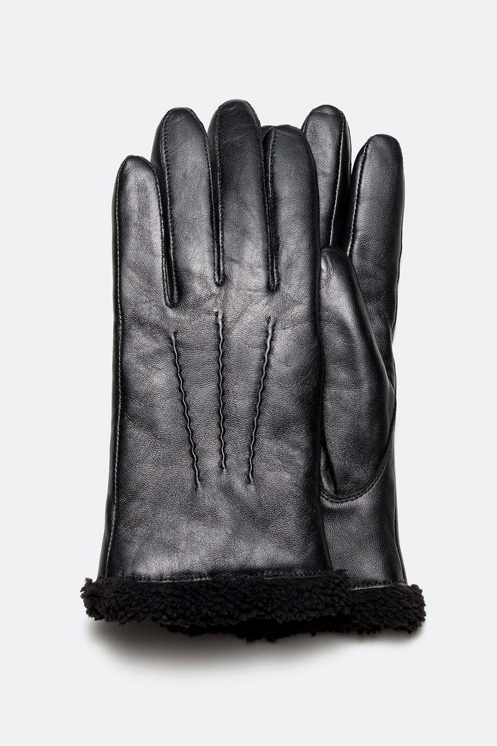 Mustat nahkakäsineet, joissa teddyvuori ryhmässä Asusteet / Nahkahansikkaat / Nahkakäsineet naisille @ Glitter (171000529060)