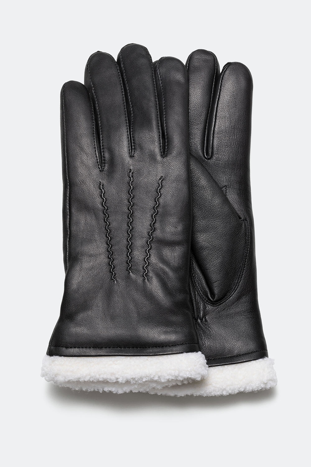 Mustat nahkakäsineet valkoisella kelsivuorilla ryhmässä Asusteet / Nahkahansikkaat @ Glitter (17100083)