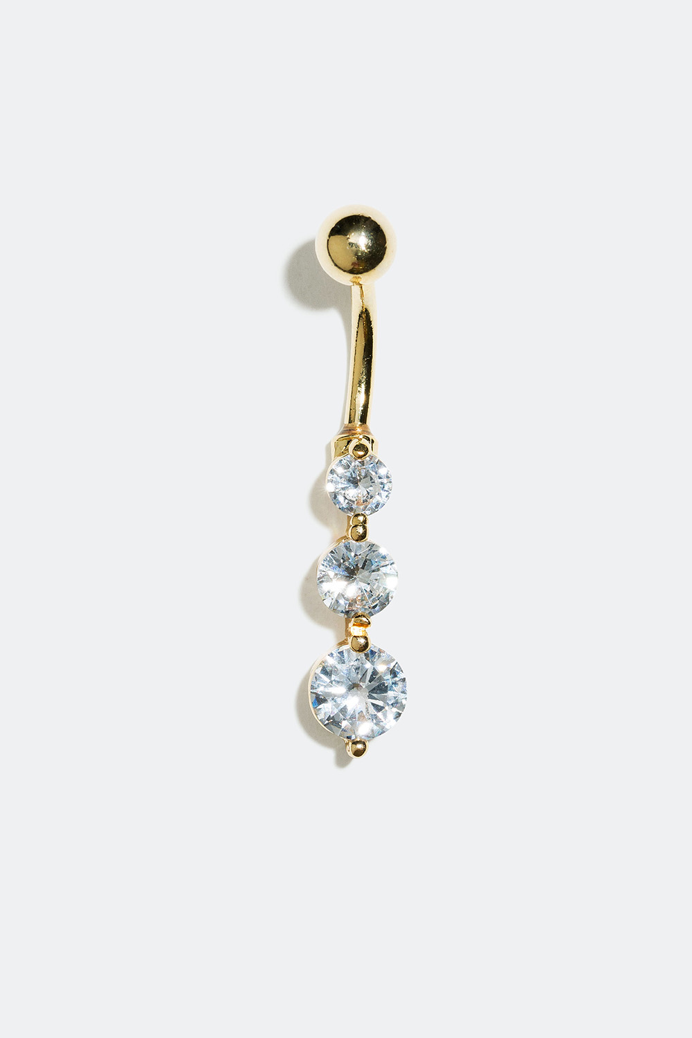 Kirurginterästä oleva klassinen napalävistys, jonka riipuksessa on kolme erikokoista helmeilevää Cubic Zirconia -kiviä. Riipus ei ole joustava, vaan kivet ovat kiinni takakappaleessa. Lävistystappi ja pallo ovat kirurginterästä ja riipus messinki.