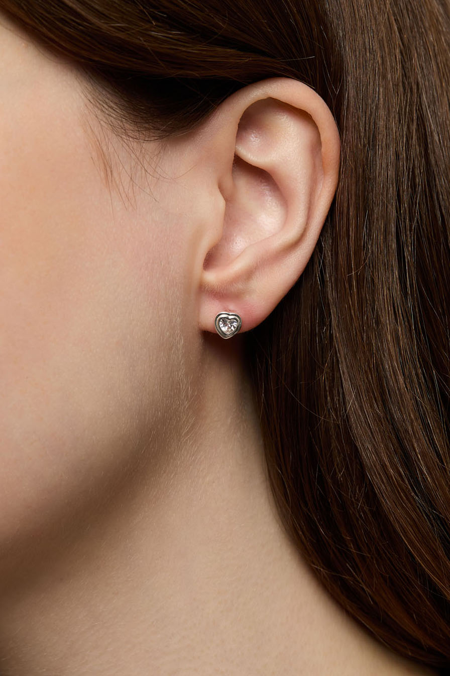 Nappikorvakorut 18k kullalla kullattua aitoa hopeaa tuplareunalla ja sydämenmuotoisella Cubic Zirconialla