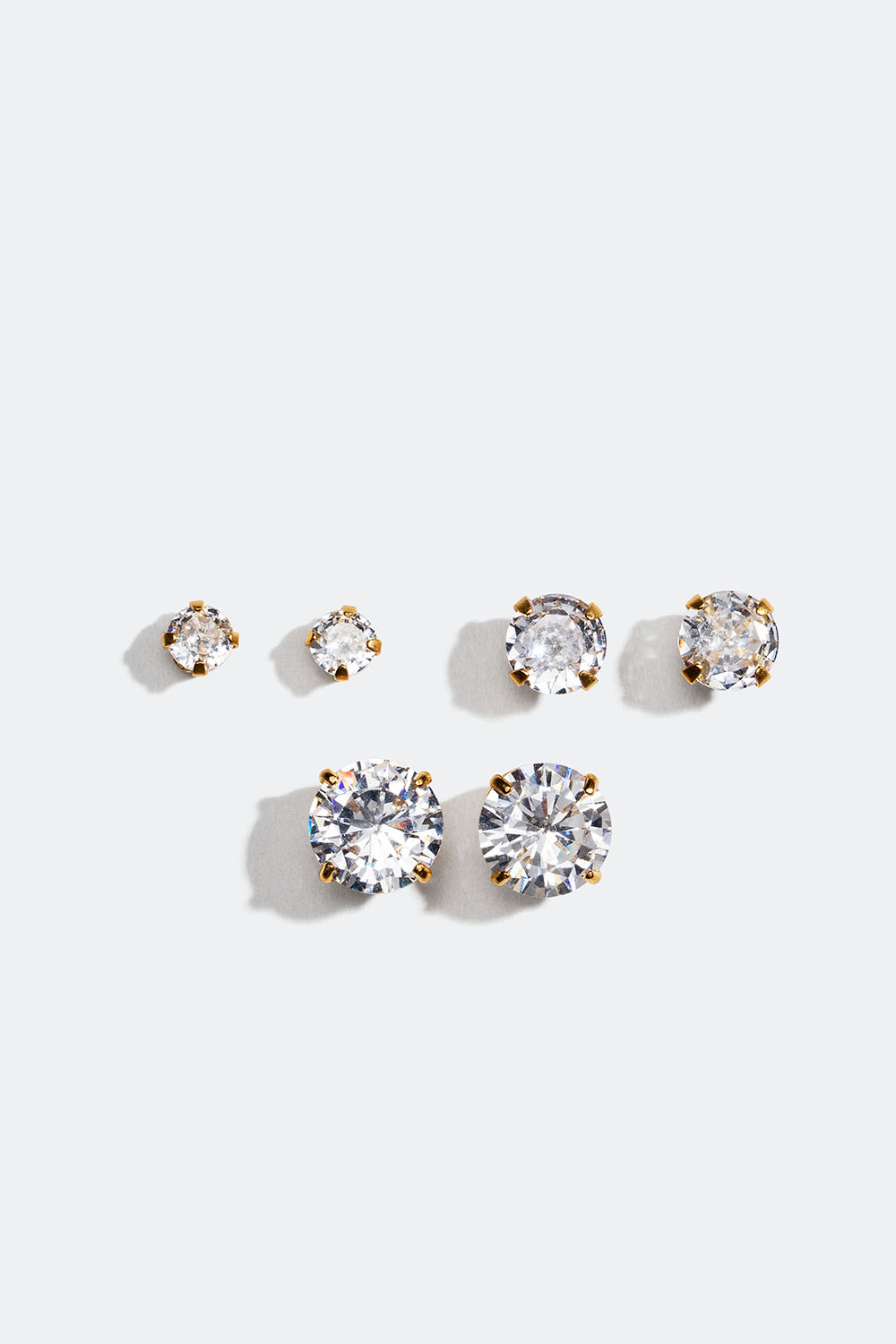 Nappikorvakorut aitoa hopeaa 18k kultauksella ja erikokoisilla pyöreillä Cubic Zirconia -kivillä, 3 kpl/pakk.