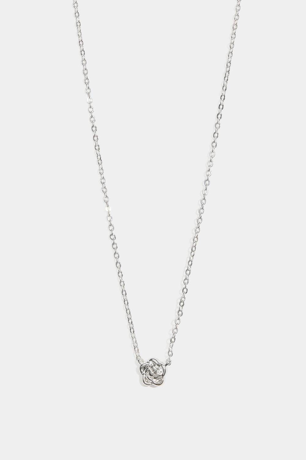 Ohut hopeanvärinen metallikaulaketju, jossa on pieni ruusu.