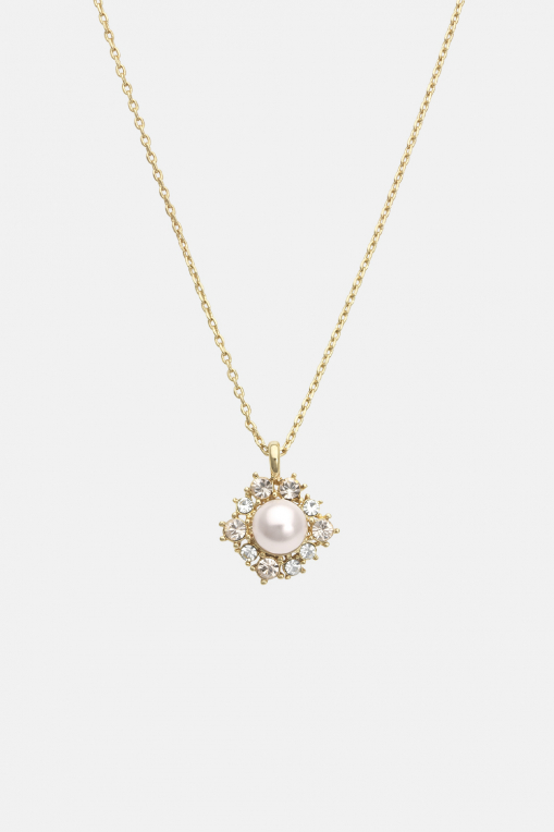 Valoa hehkuvassa Emily-kaulakorussa on upea norsunluun värinen helmi ja pienempiä kirkkaita ja ruusun sävyisiä kristalleja luomassa hurmaavaa kokonaisuutta. Istutettu kultaan. Täydennä tyylisi muilla Emily-malliston tuotteilla.