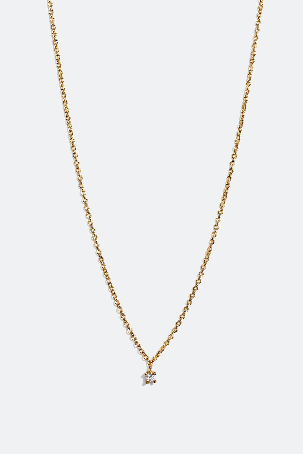 Ohut 18 karaatin kullattu aito hopeakaulakoru, jossa on ketju ja pieni koristeellinen Cubic Zirkonia -kivi. Ajaton koru, joka tuo asuusi hillityn mutta kimaltelevan yksityiskohdan.
