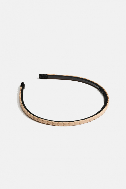 Ohut hiuspanta, jossa on beigeä punottua keinonahkaa.