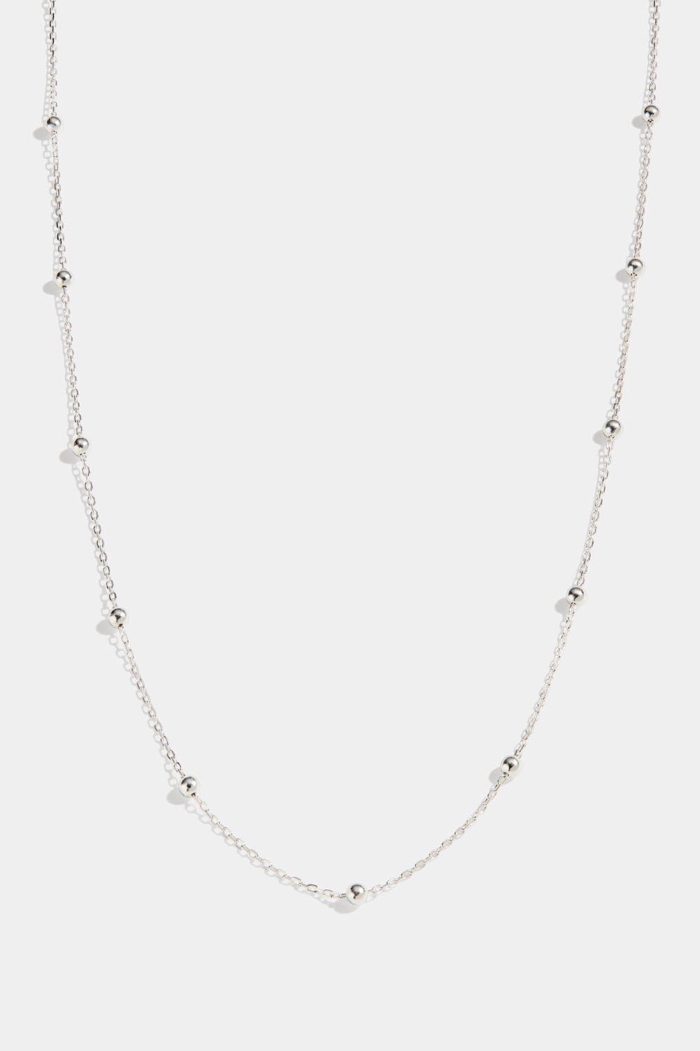 Ohut kaulakoru aitoa hopeaa ja pieniä hopeapalloja.