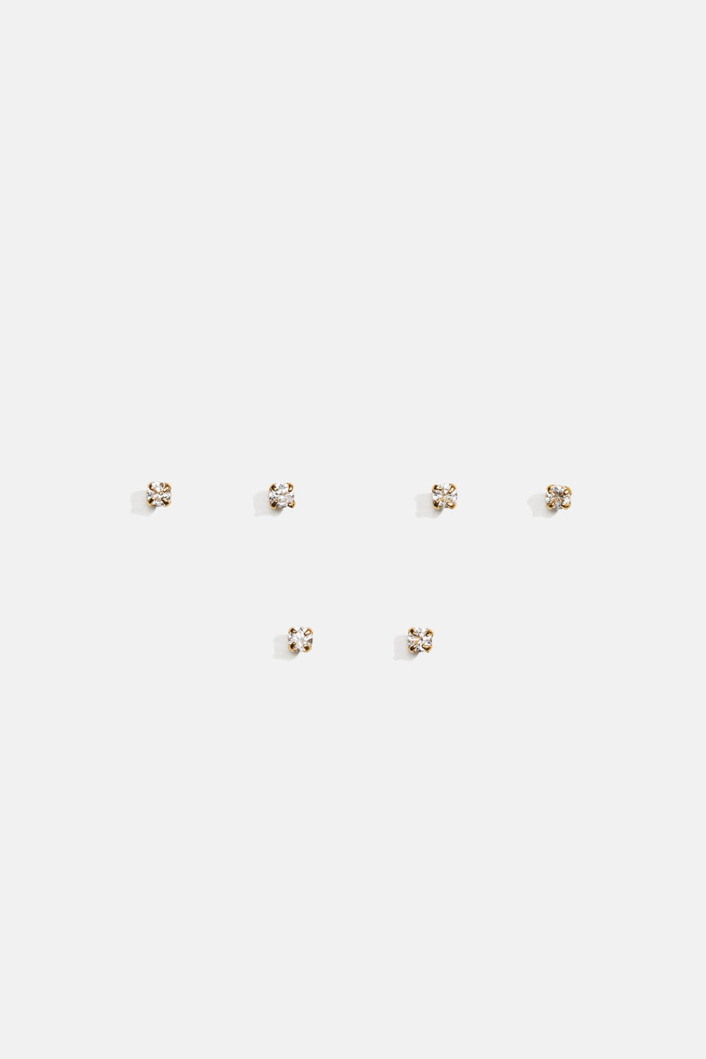 Pienet aidosta 18k kullatusta hopeasta valmistetut nappikorvakorut, joissa Cubic zirconia -kiviä, 3 paria ryhmässä Kullattu aito hopea / Kullatut korvakorut @ Glitter (553002382002)