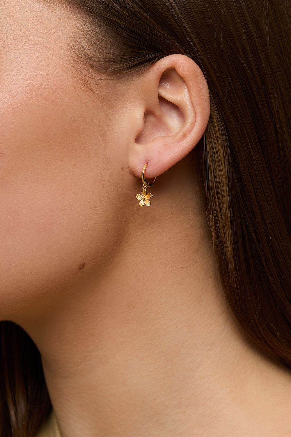 Pienet aidot 18K kullatut hopeakorvarenkaat, joissa teksturoituja kukkia ryhmässä Kullattu aito hopea / Kullatut korvakorut @ Glitter (553005272002)