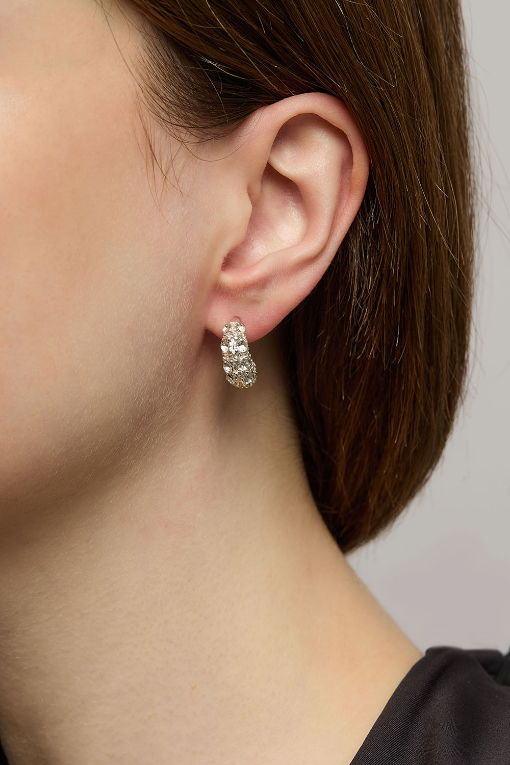 Pienet harmaat korvarenkaat, joissa strasseja ryhmässä Korut / Korvakorut / Strassikorvakorut @ Glitter (253010051500)