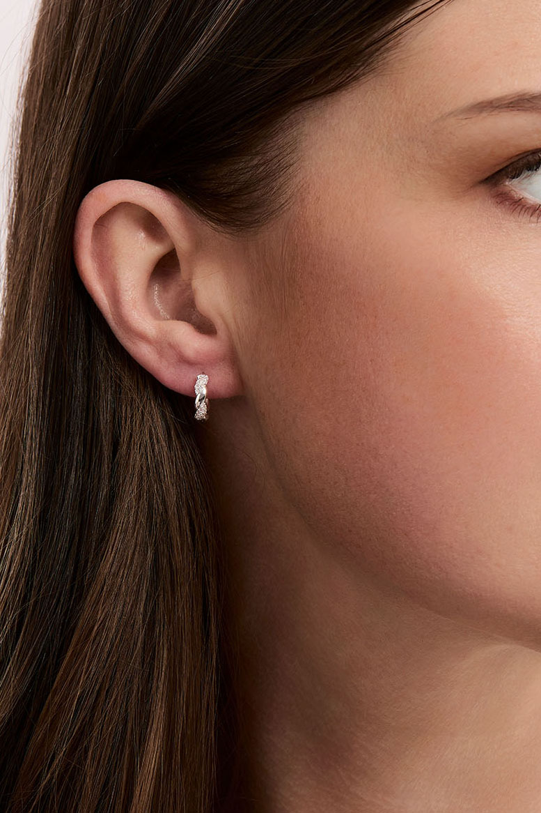 Pienet hopeakorvarenkaat kierteisellä muotoilulla ja Cubic Zirkonia -kivillä