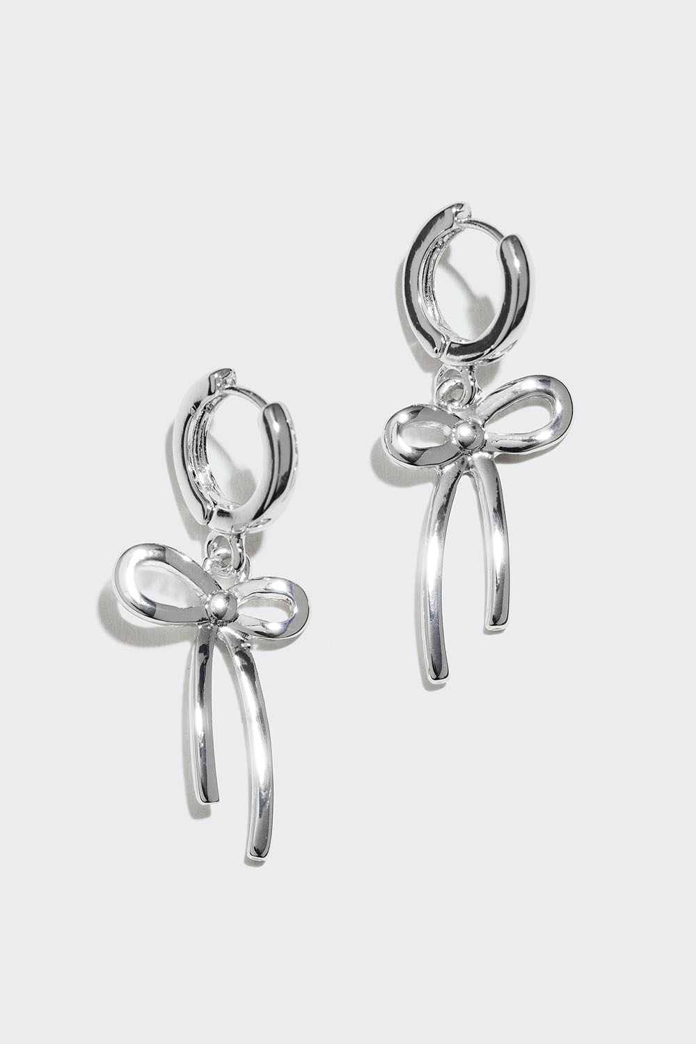 Sileät, pienet metallikorvarenkaat, joissa koristeelliset rusettiriipukset.