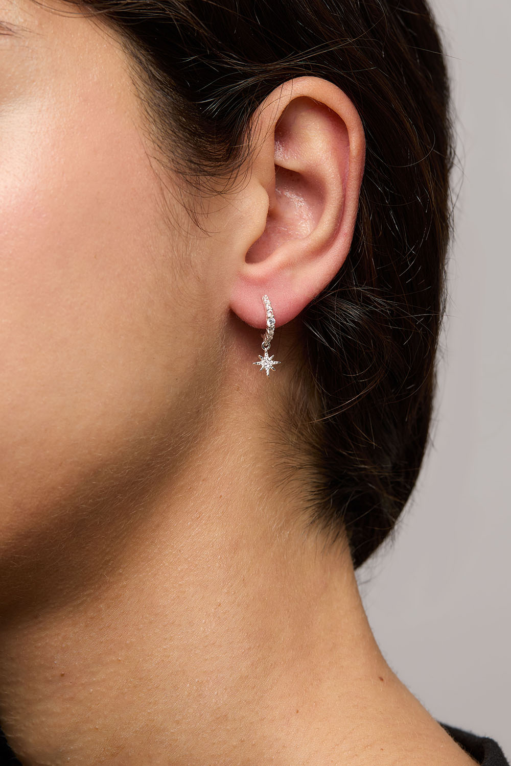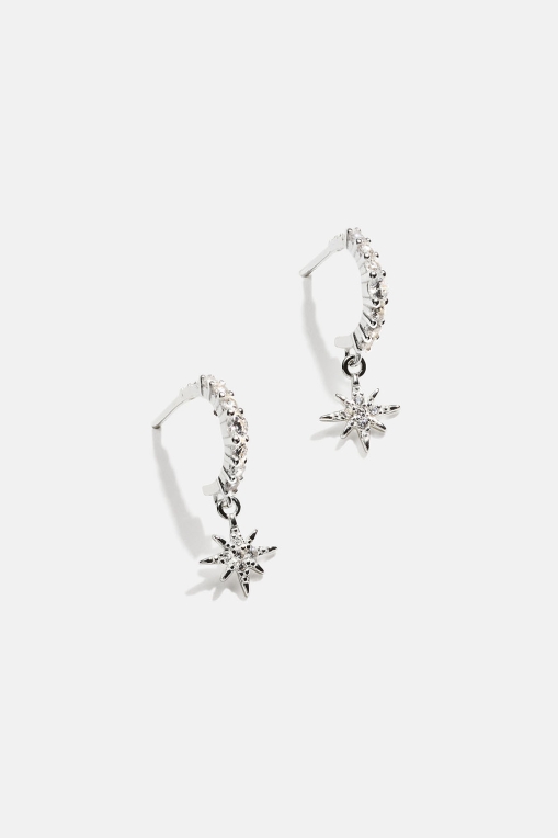 Pienet korvarenkaat tähtiriipuksilla aitoa hopeaa koristeltuina pienillä Cubic Zirconia -kivillä ryhmässä Aitoa Hopeaa / Hopeiset korvakorut / Korvarenkaat aitoa hopeaa @ Glitter (553004721001)