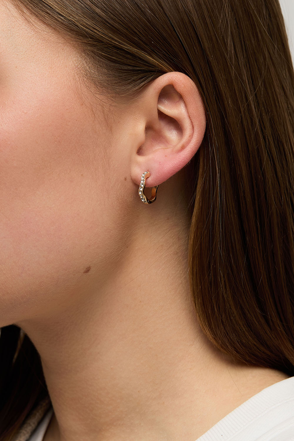 Pienet kullanväriset korvarenkaat, joissa aaltoileva muoto ja strasseja ryhmässä Korut / Korvakorut / Korvarenkaat @ Glitter (253010562002)