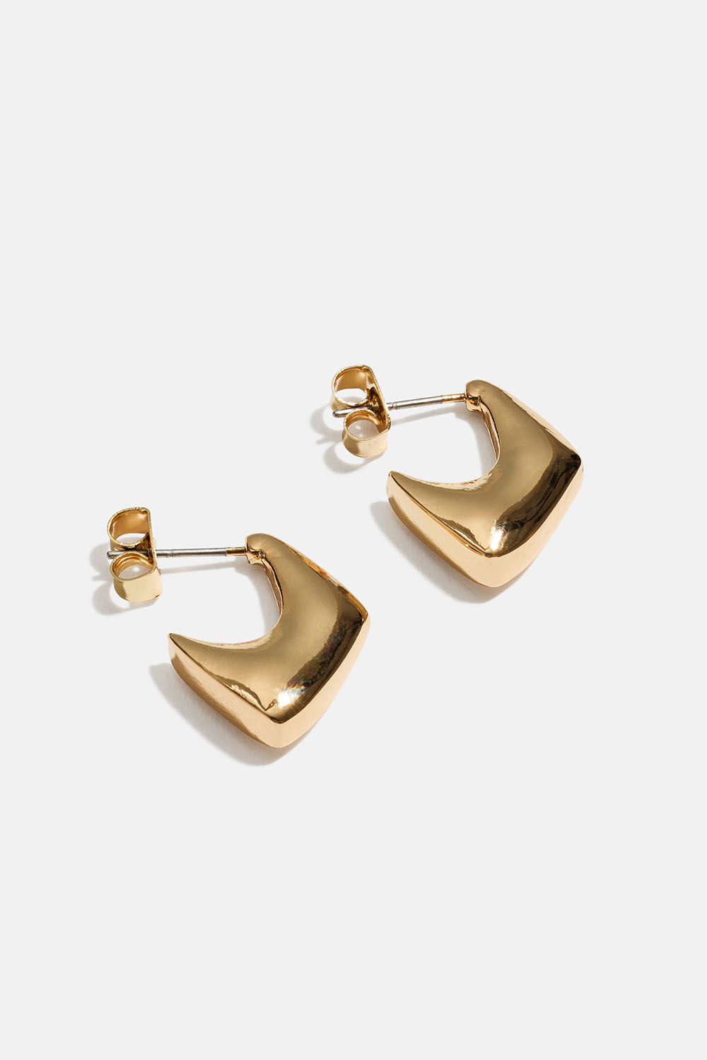 Pienet, kullanvärisestä metallista valmistetut kulmikkaat korvarenkaat.