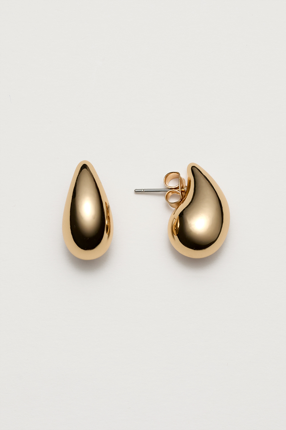 Pienet pisaranmuotoiset, kullanväriset metallikorvakorut. Pelkistetyt korvakorut, joiden tyylikäs muotoilu sopii kaikkiin tilaisuuksiin.