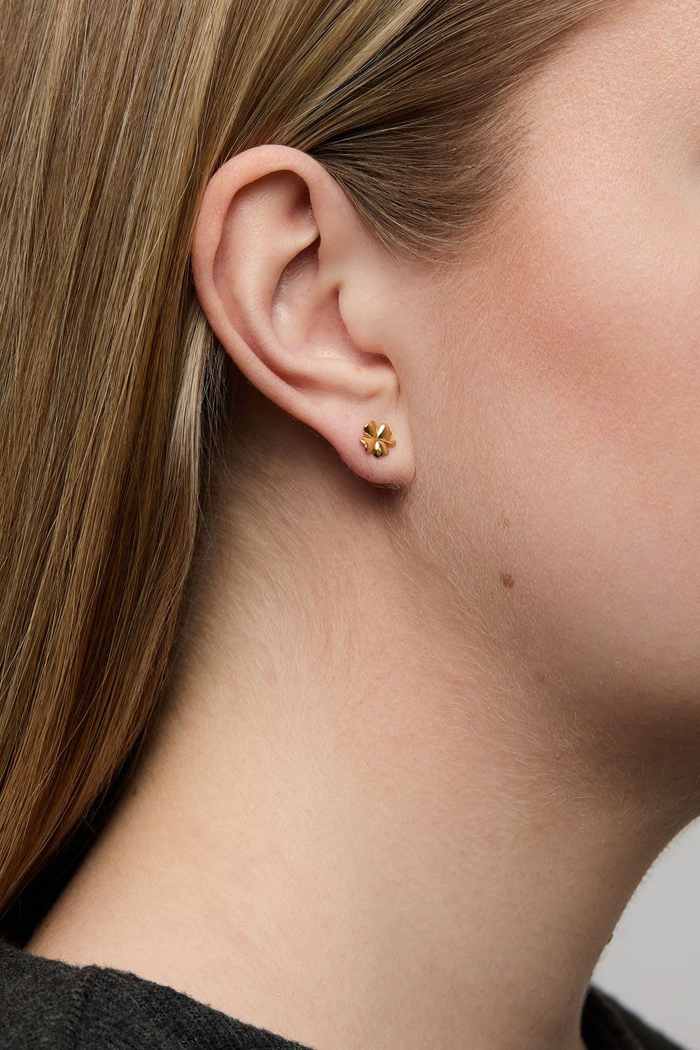 Pienet nappikorvakorut 18k kullattua hopeaa, ja joissa on nelilehtinen apila