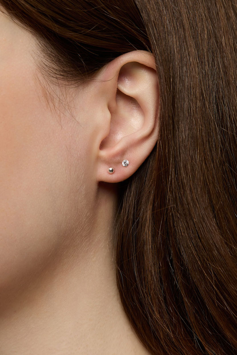 Kahdet pienet nappikorvakorut aitoa hopeaa. Pari klassissia pallokorvakoruja ja toinen Cubic Zirconia -kivillä koristettuja.